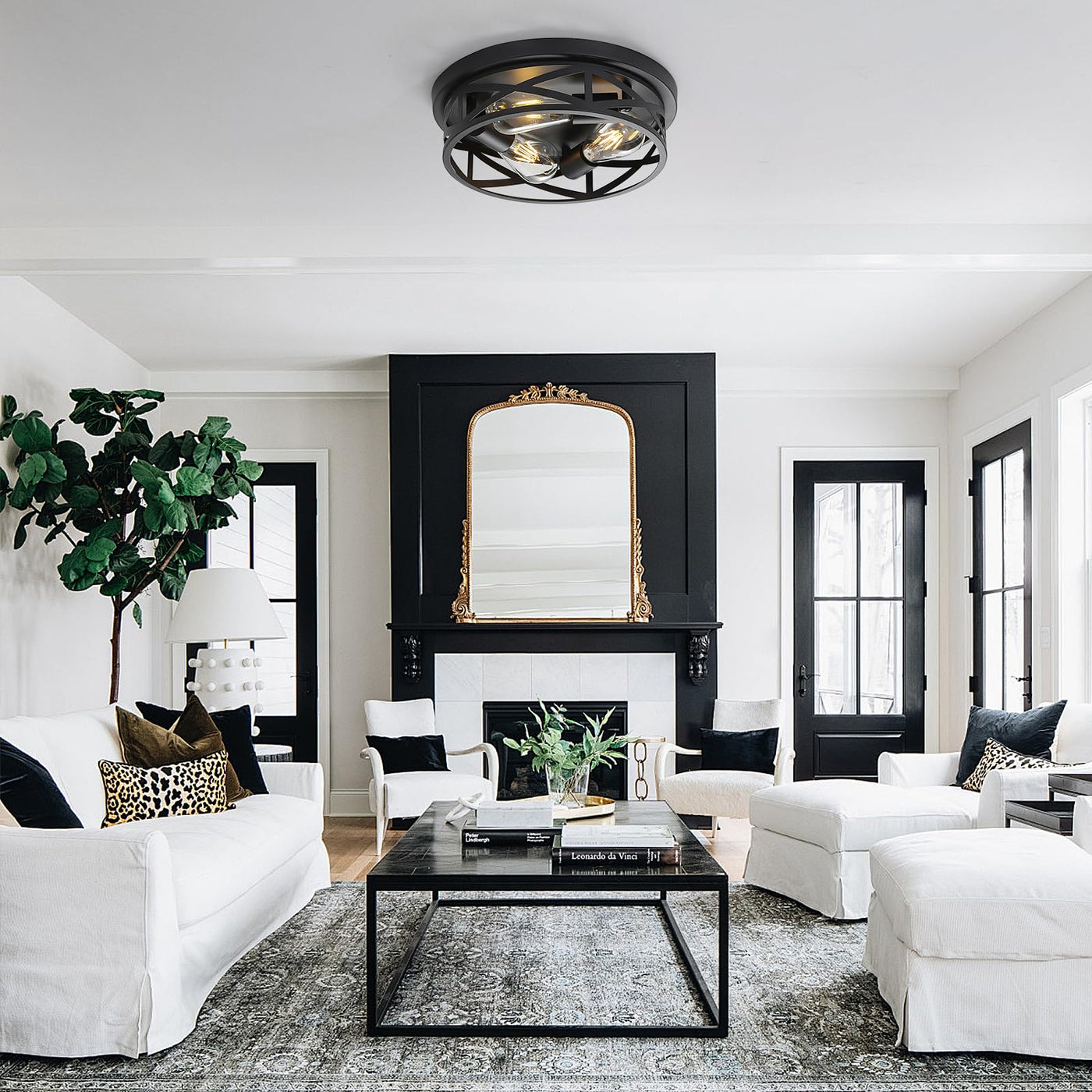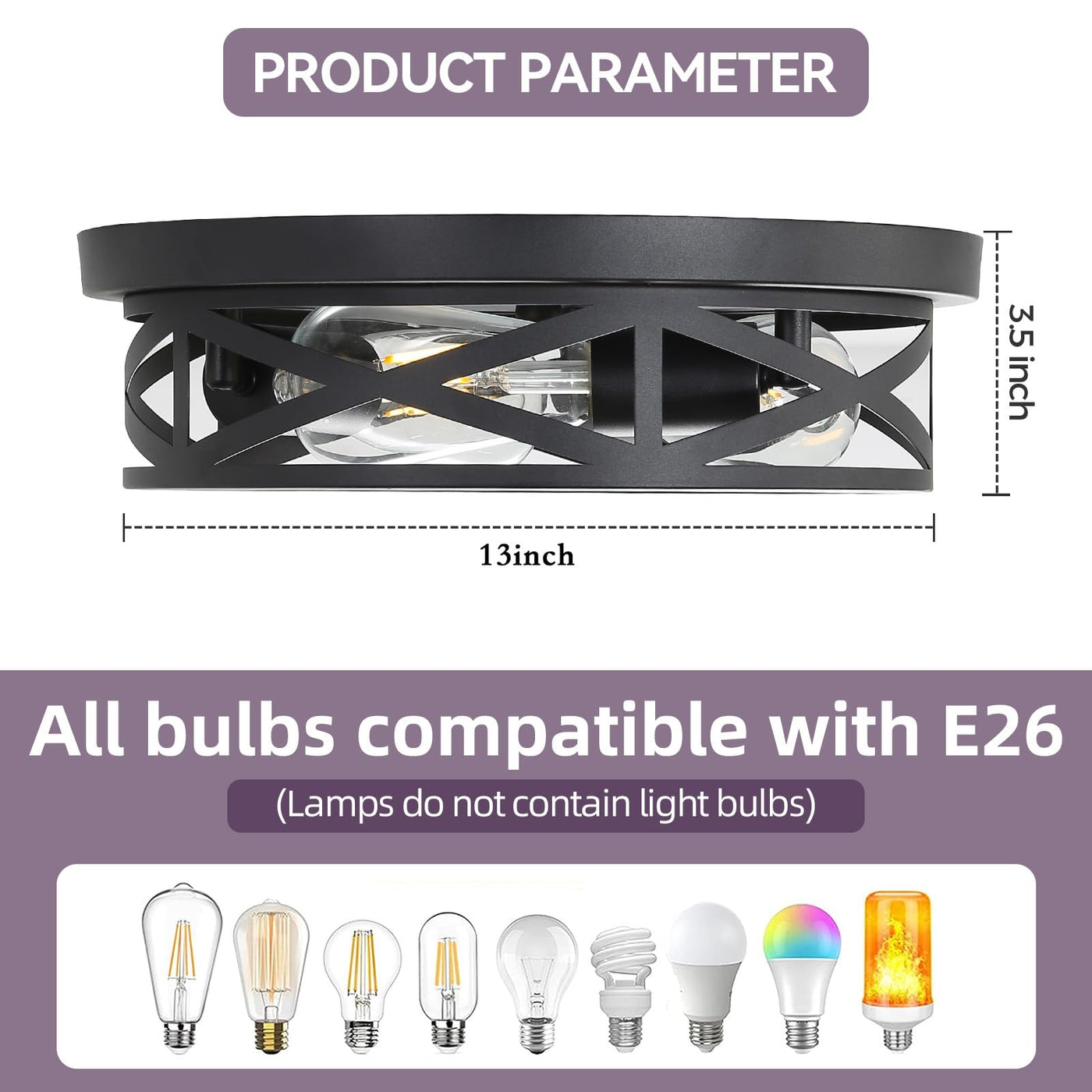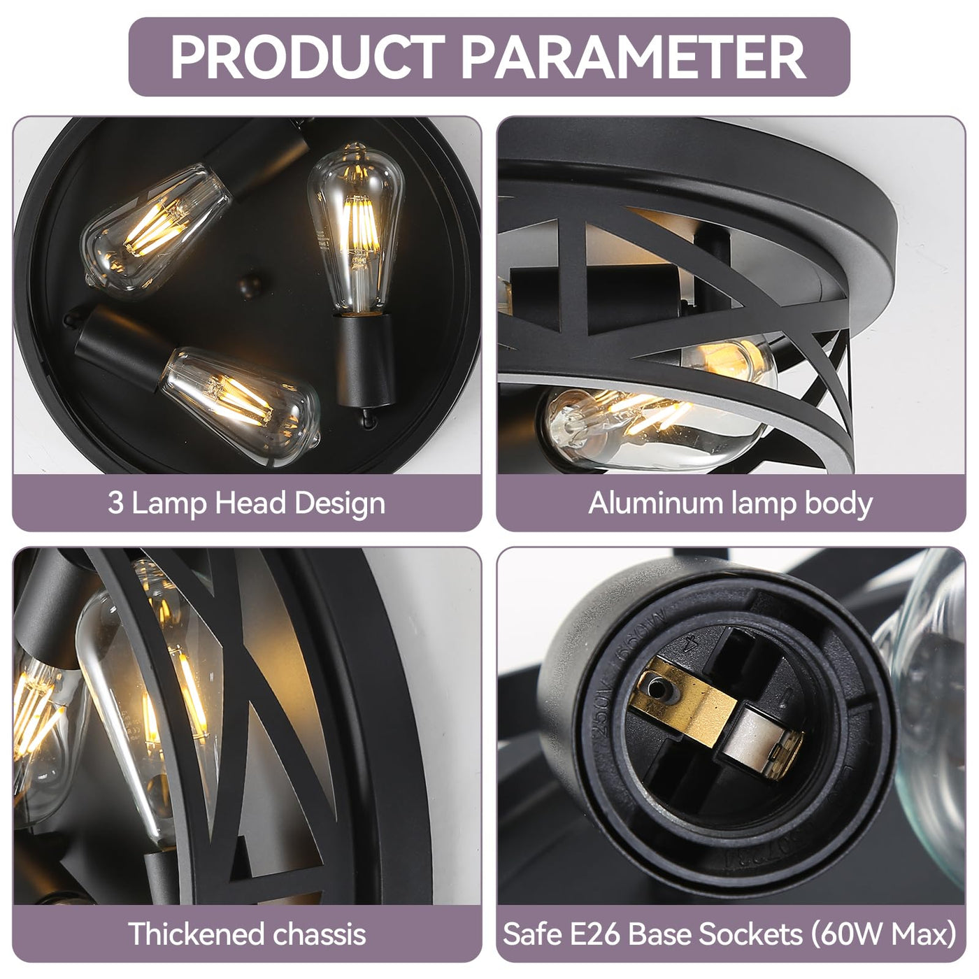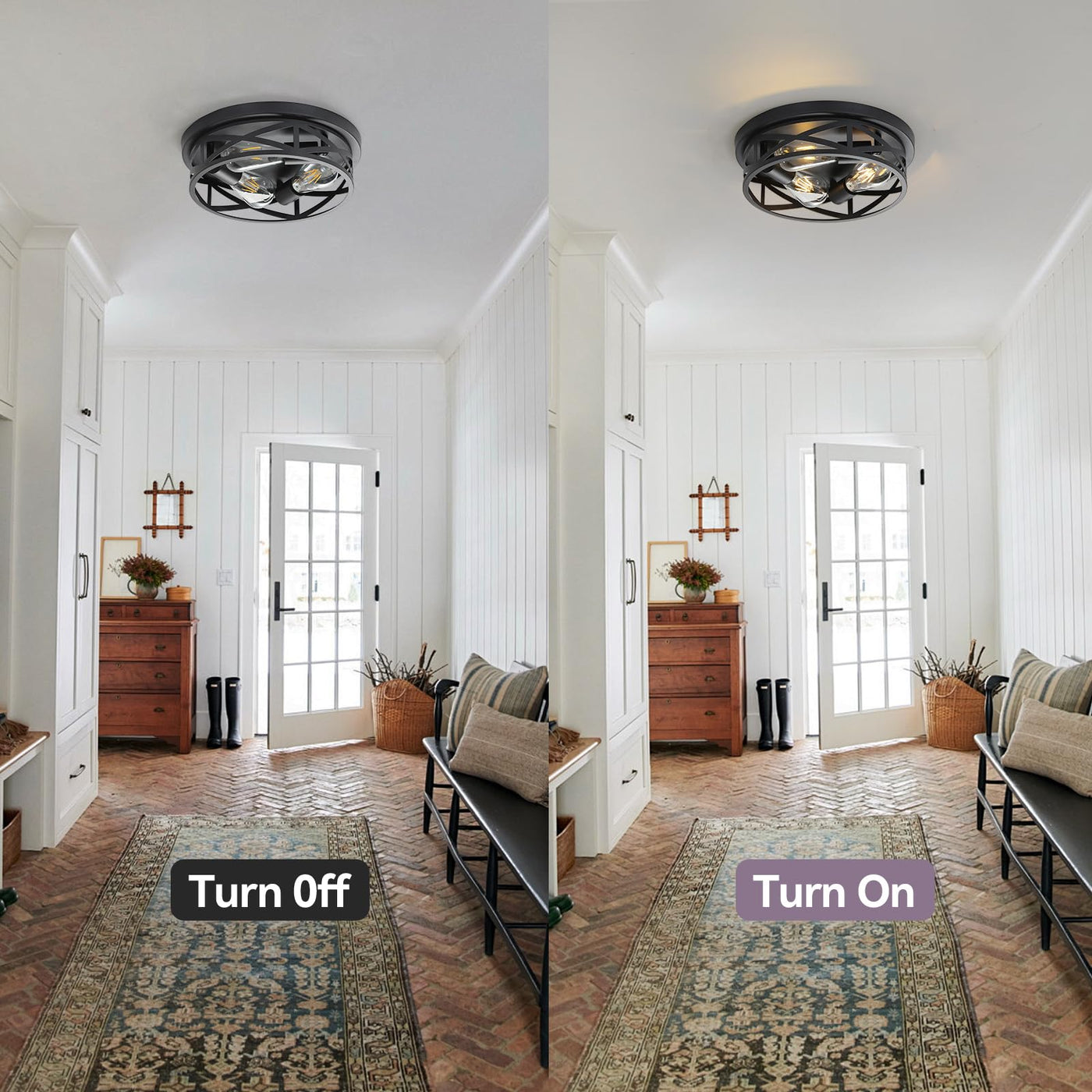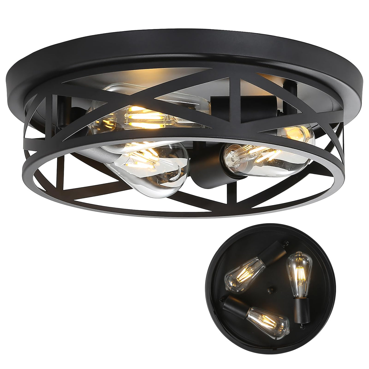 Sewterolyn 13 Inch Black Flush Mount Ceiling Light Fixtures,3-Light Industrial Farmhouse Ceiling Light Fixture,Black Light Fixtu