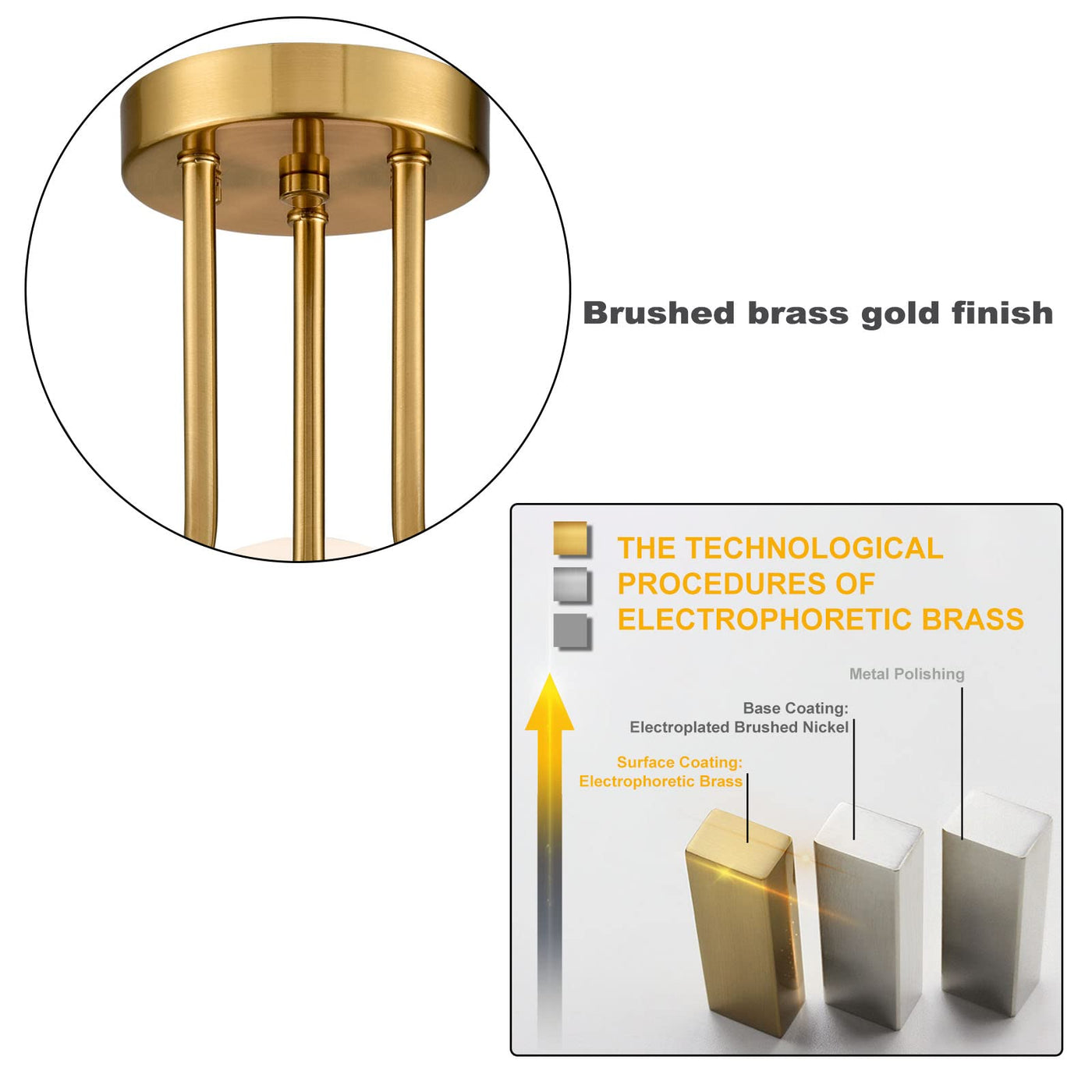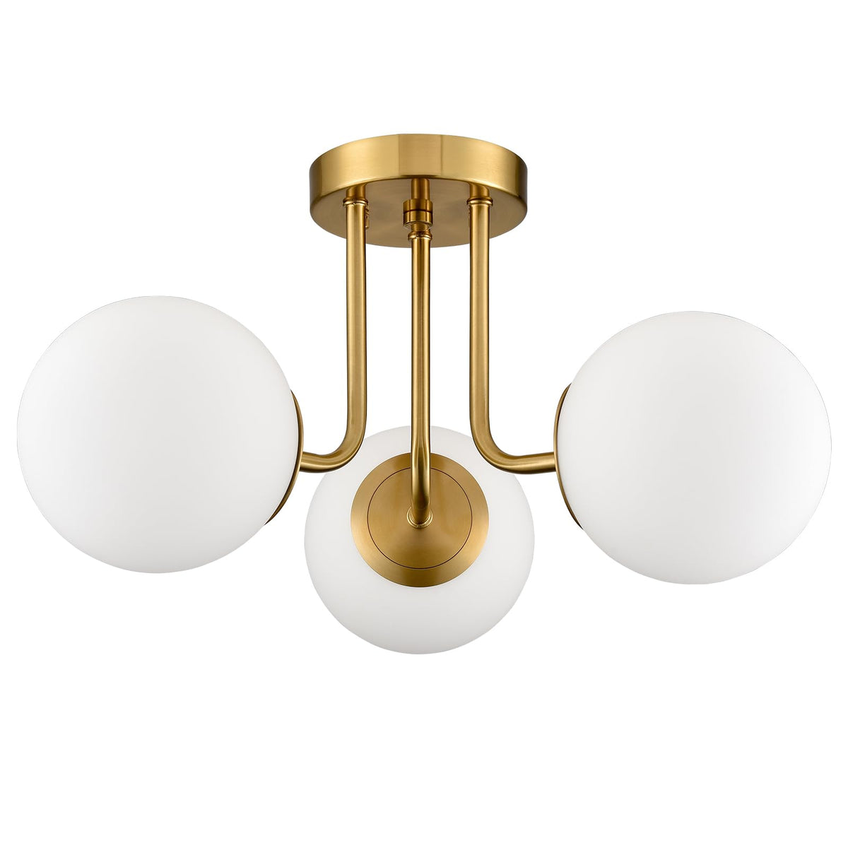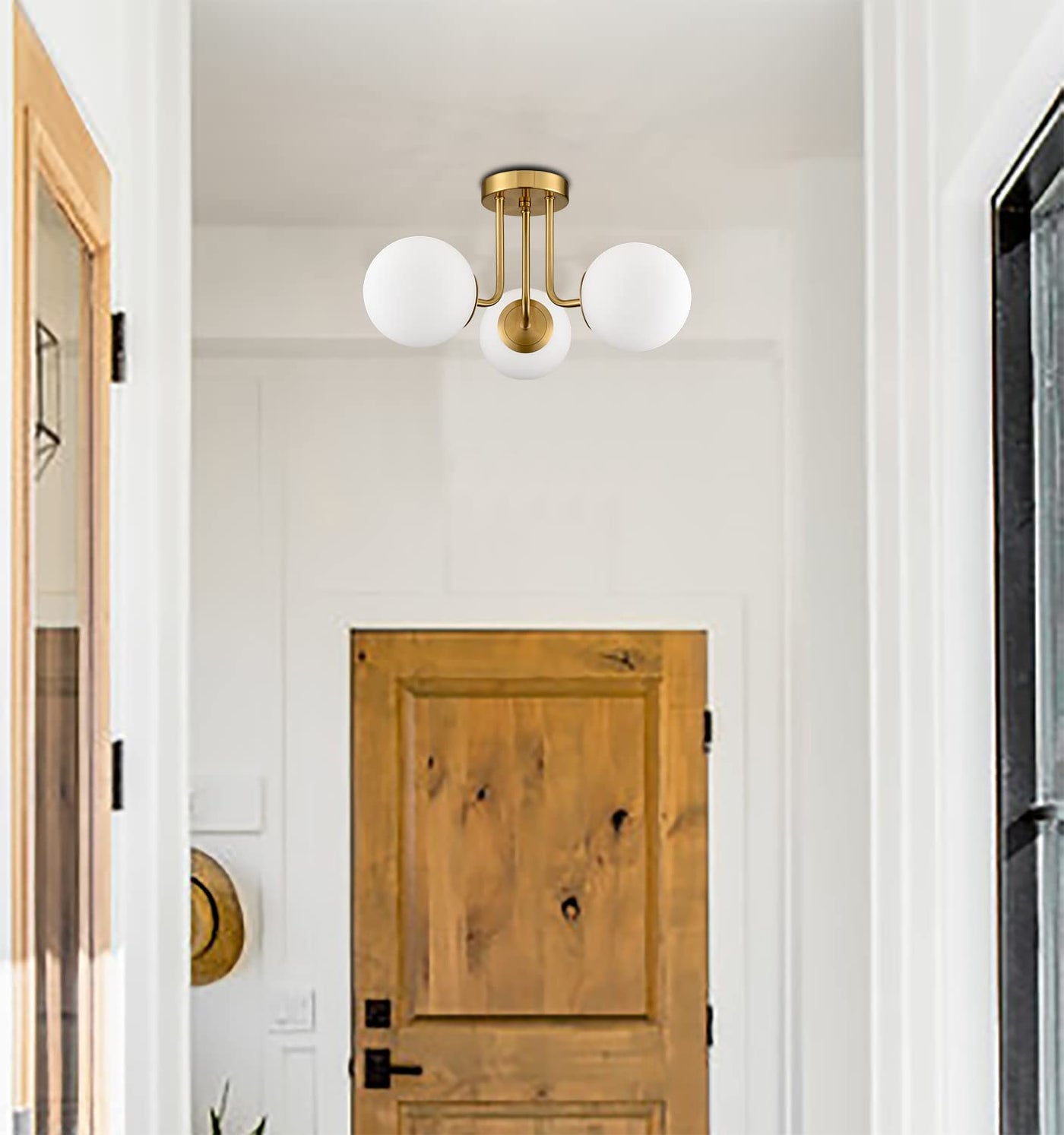 Shawnkey Modern Brass Gold 3-Light Semi Flush Mount Ceiling Light With White Glass Shade