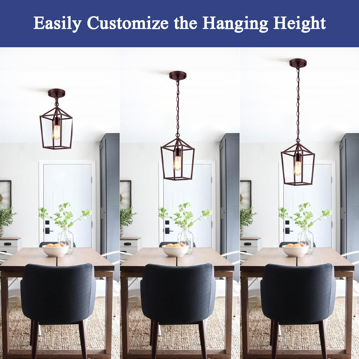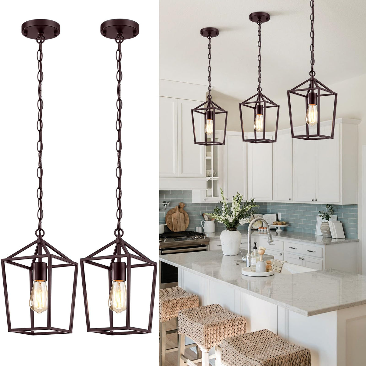 Sheetea 2-Pack Farmhouse Pendant Lights, Modern Kitchen Pendant Lighting With Metal Cage Design, Sloped Ceiling Adaptable, Brown