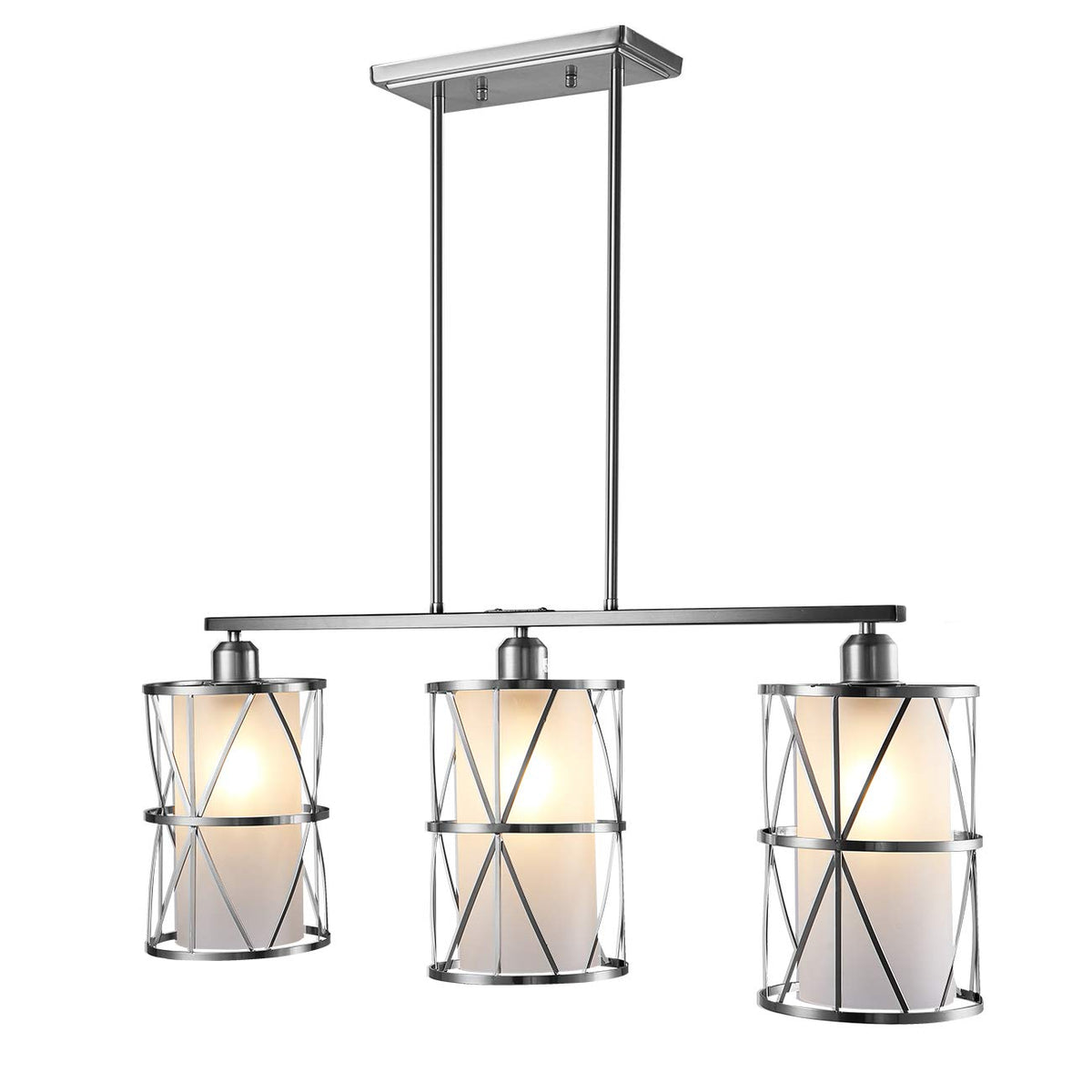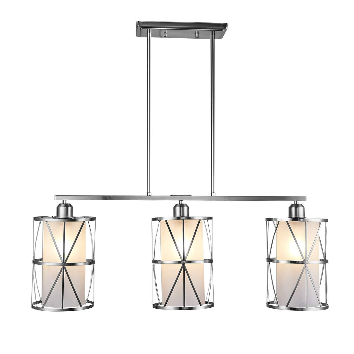 SHENGQINGTOP sleek modern island light features 3 frosted glass shapes within 3 metal frameworks, which can create a relaxed and cozy atmosphere, exposing the beauty of the bulb and the light it casts. This shining brushed nickel multi light pendant that beautifully catches the light around it while providing a warm glow to modern interiors. Great for hanging over a dining room table, living room or kitchen islands where your vision won't be impeded.