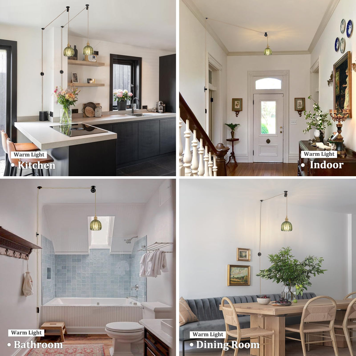 Q: What styles or decor does the Shenmoyl pendant light complement?A: The retro and elegant design of the Shenmoyl pendant light makes it versatile for various interior decoration styles. It can enhance the aesthetic of family homes, restaurants, cafes, and other commercial spaces, adding unique charm and style.