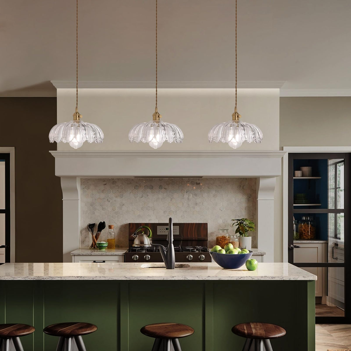 Shenmoyl Pendant Light With Clear Scindapsus Glass Lmapshade, Brass Vintage Pendant Light Adjustable Hanging Light For Kitchen I