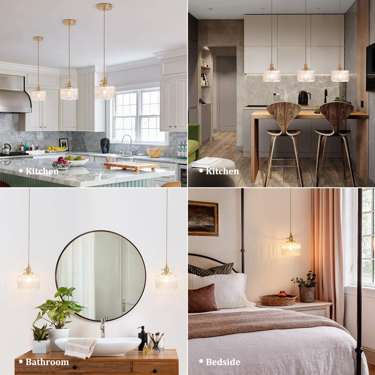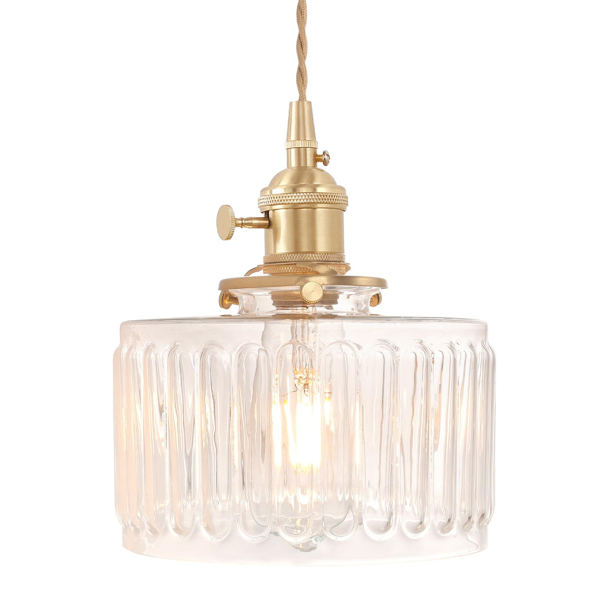 Shenmoyl Pendant Light With Clear Striped Glass Lmapshade, Brass Vintage Pendant Light Adjustable Hanging Light For Kitchen Isla