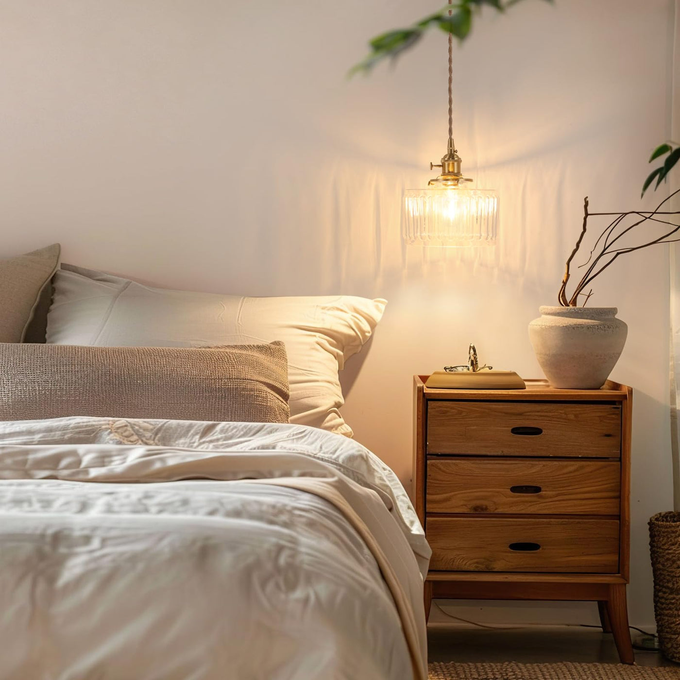 Q: What materials are used in the Shenmoyl Pendant Light?A: The Shenmoyl Pendant Light is crafted from high-quality materials. The lampshade is made of clear, treated glass for a uniform finish, while the metal components are made of corrosion-resistant brass for durability. The wiring is safely wrapped in a rubber coating with fabric covering.