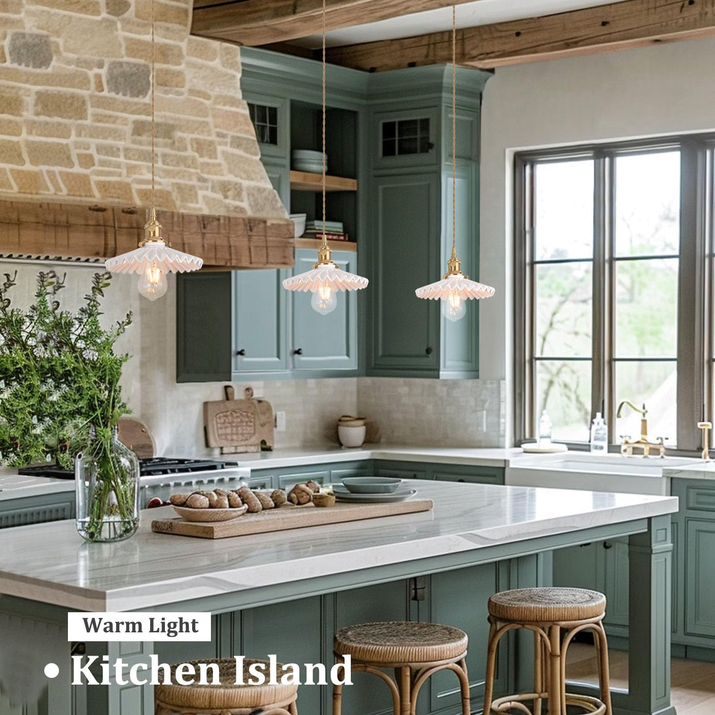 Shenmoyl Pendant Light With White Pleated Ceramic Lmapshade, Brass Vintage Pendant Light Adjustable Hanging Light For Kitchen Is