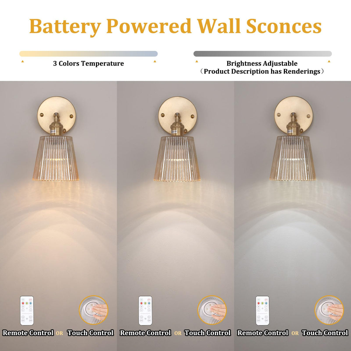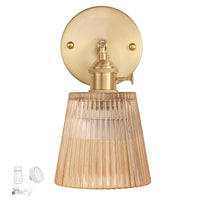 Shenmoyl Vintage Battery Operated Wall Sconce with Amber Stripe Glass Lampshade Rechargeable Battery Powered Wall Light with Rem