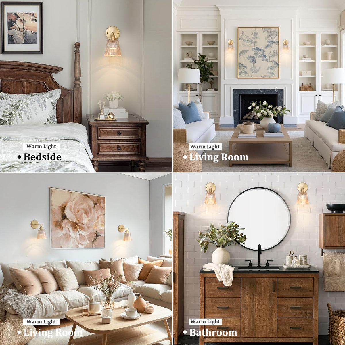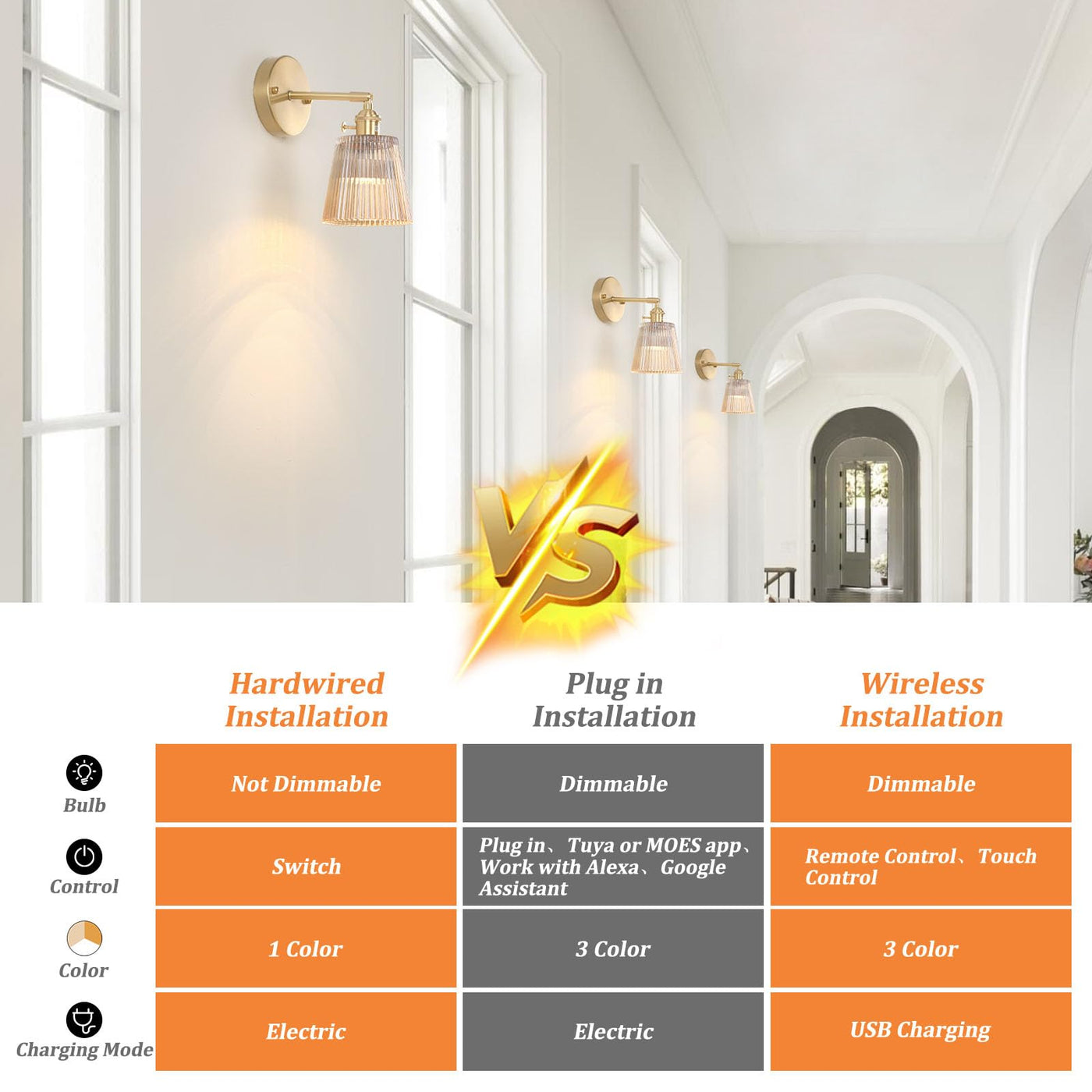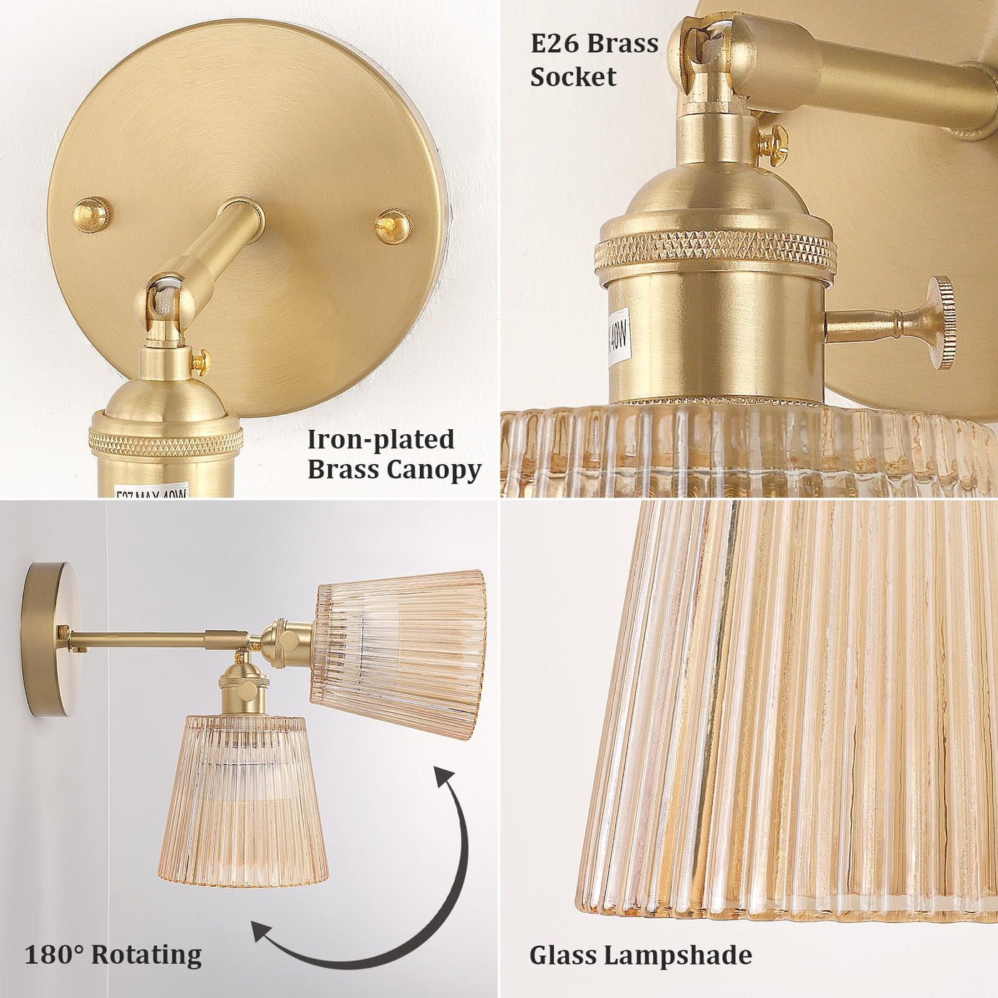 ?? Feature: Sending out simple but classic aesthetics. Its vintage shape matches with the whole light, ending up with a more retro and classic sense of beauty. The lampshade is made of high-quality glass material,which has good light transmission,non-glaring, simple and beautiful, easy to clean.Use rechargeable battery remote control light bulb, no wiring, easy installation. And can be controlled by remote control. We have a mature and systematic inspection process. All of the products get through strict inspection and make sure its quality before reaching your door. ?? Specification: Material: Glass+Metal Bulb: Included Lamp Base Type: E26 / E27 Compatible Bulbs: Compact Fluorescent, Incandescent, Halogen, and LED bulbs Type: Modern Glass Wall Sconces Style: Retro / Nodic / Vintage Style Lampshade Dimension: 4.96'' x 4.8'' (12 x 12.6cm) Rated Power: Max 60 watts. Direction of Light: 180 up and down adjustable angel Color: Amber Color of The Lamp Holder: Brass Installed: No wiring battery operated ?? Package includes: 1 x Wall lamp?1 x battery operated bulb?1 x remote control?1 x usb cable ?? Warm Tip: If it's hard to install for you, please rent a licensed electrician to do this for you. For a longer service life, please install and use it in a dry environment