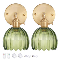 ?? Feature: Sending out simple but classic aesthetics. Its vintage shape matches with the whole light, ending up with a more retro and classic sense of beauty. The lampshade is made of high-quality glass material,which has good light transmission,non-glaring, simple and beautiful, easy to clean.Use rechargeable battery remote control light bulb, no wiring, easy installation. And can be controlled by remote control. We have a mature and systematic inspection process. All of the products get through strict inspection and make sure its quality before reaching your door. ?? Specification: Material: Glass+Metal Bulb: Included Lamp Base Type: E26 / E27 Compatible Bulbs: Compact Fluorescent, Incandescent, Halogen, and LED bulbs Type: Modern Glass Wall Sconces Style: Retro / Nodic / Vintage Style Lampshade Dimension: 5'' x 4.25'' (12.7 x 10.8cm) Rated Power: Max 60 watts. Direction of Light: 180 up and down adjustable angel Color: Green Color of The Lamp Holder: Brass Installed: No wiring battery operated ?? Package includes: 2 x Wall lamp?2 x battery operated bulb?2 x remote control?2 x usb cable ?? Warm Tip: If it's hard to install for you, please rent a licensed electrician to do this for you. For a longer service life, please install and use it in a dry environment