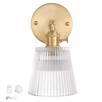 Shenmoyl Vintage Battery Operated Wall Sconce with Transparent Stripe Glass Lampshade Rechargeable Battery Powered Wall Light wi