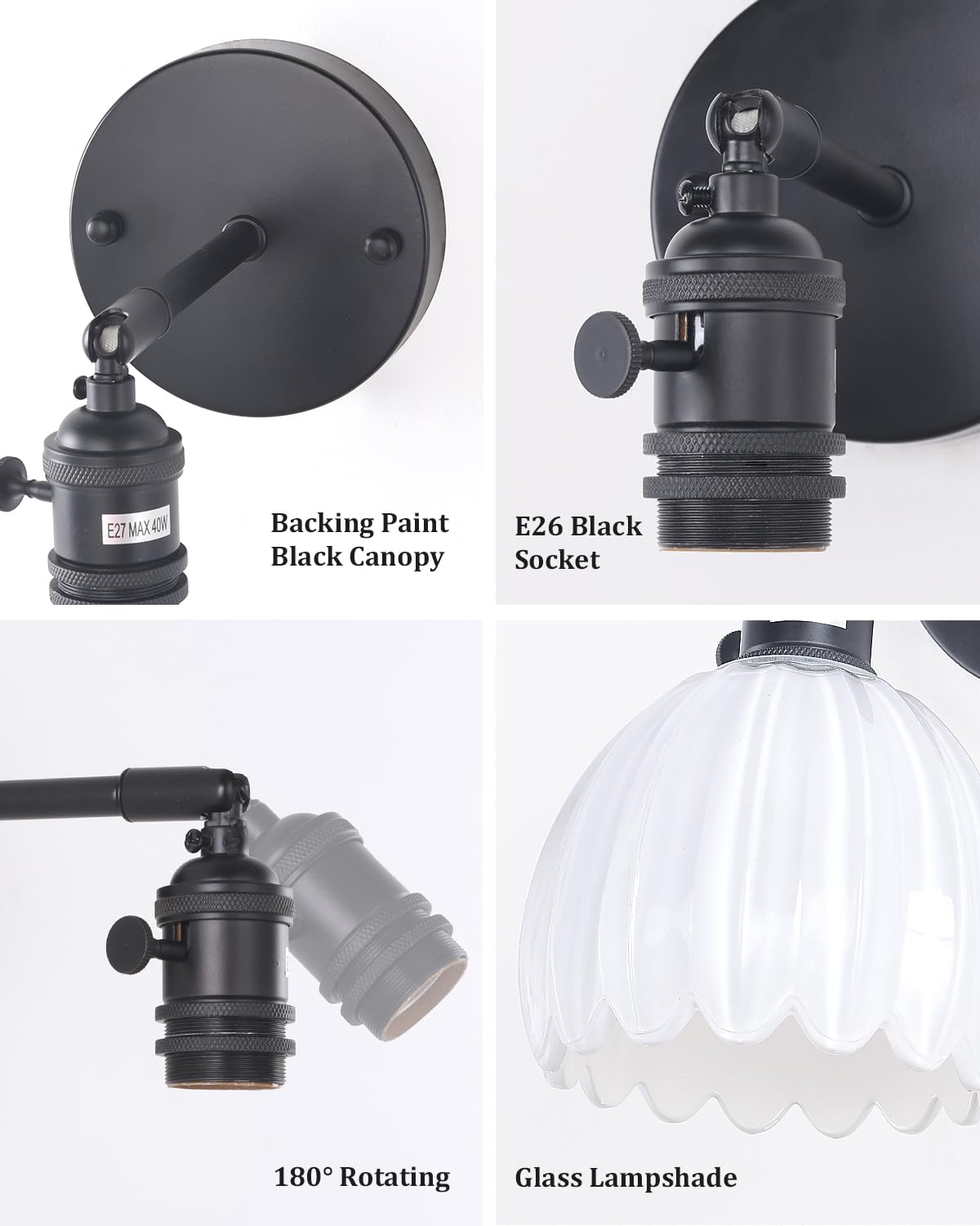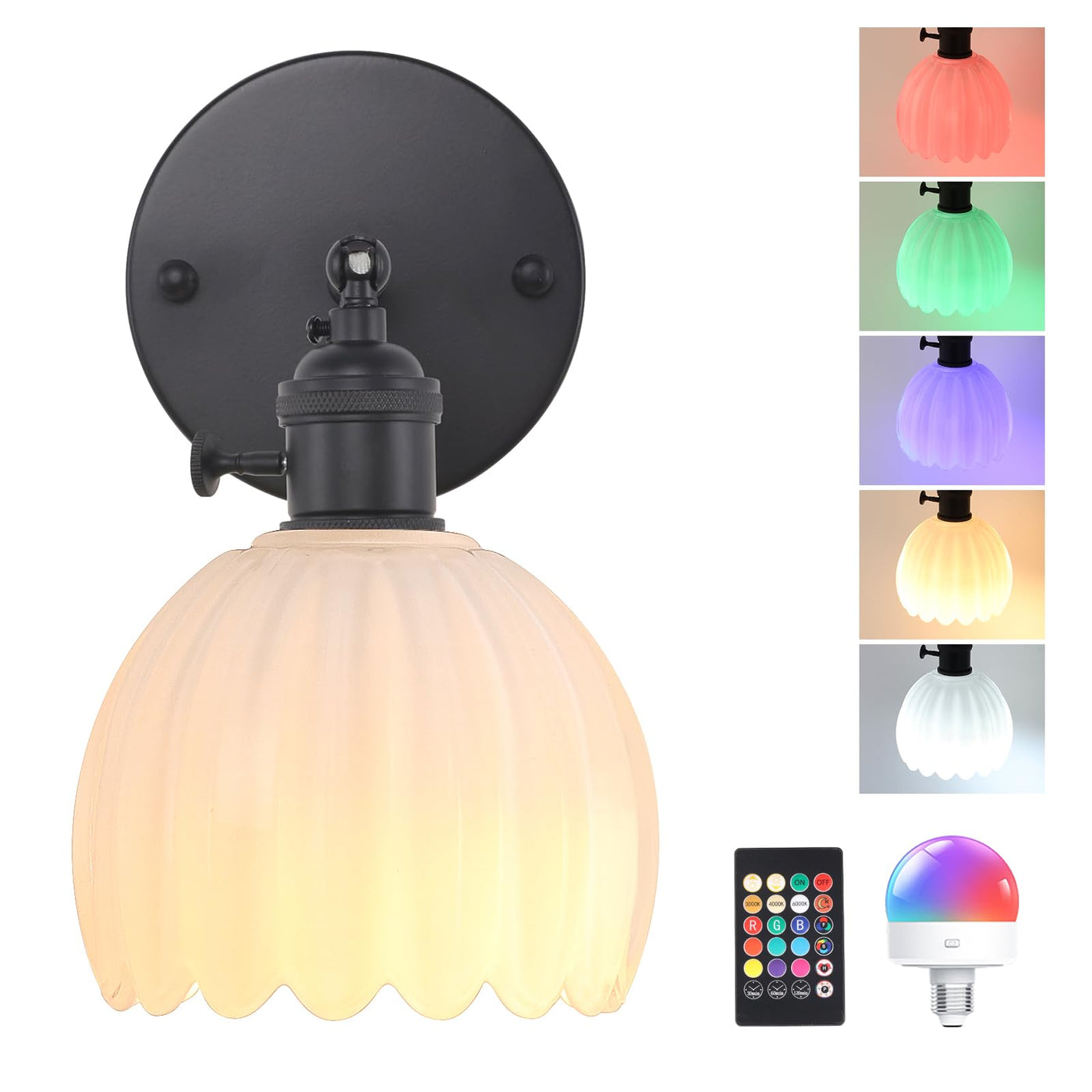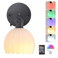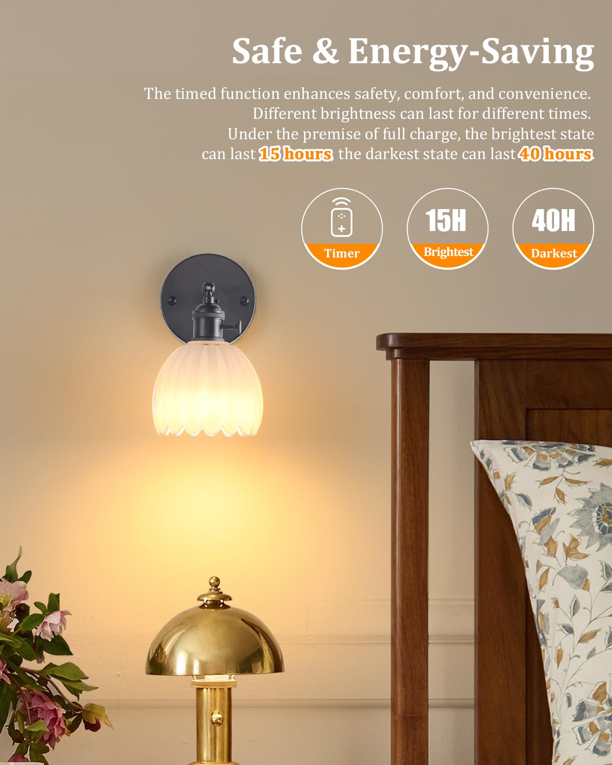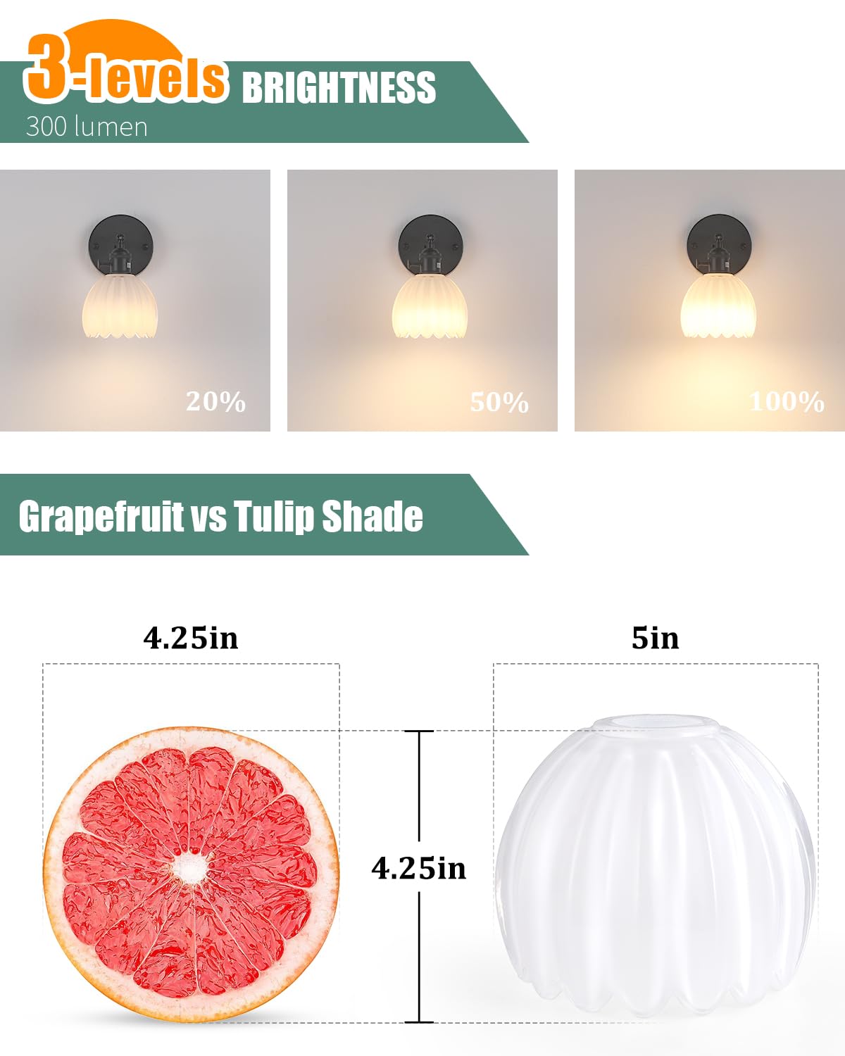 Shenmoyl Vintage Battery Operated Wall Sconce With White Tulip Glass Lampshade Wireless Rechargeable Battery Powered Black Wall
