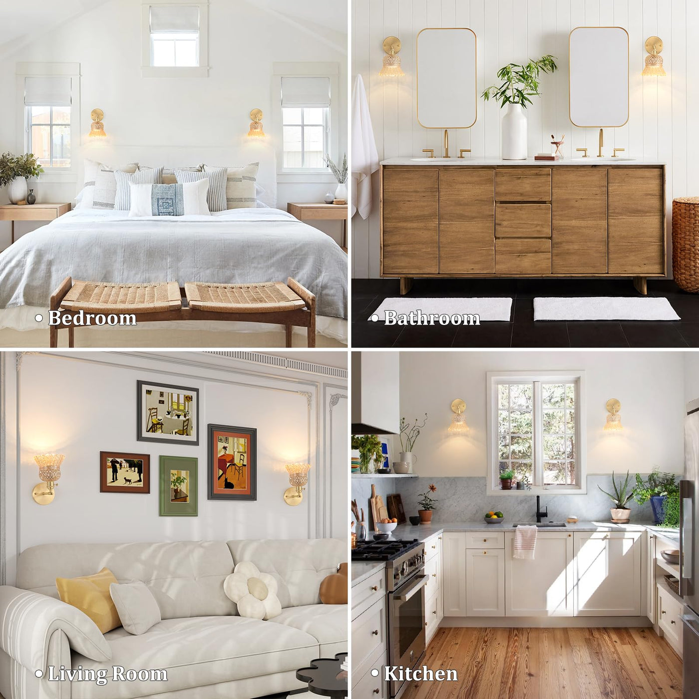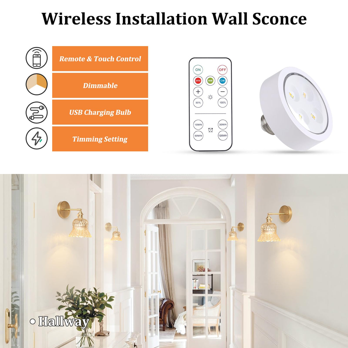 Delicate glass lampshade, retro brass plated iron lamp base, this wall sconce match various styles of homes. The perfect decor for your bedside, bed, bedroom, bathroom, living room, doorway, kitchen, hallway, office, etc.