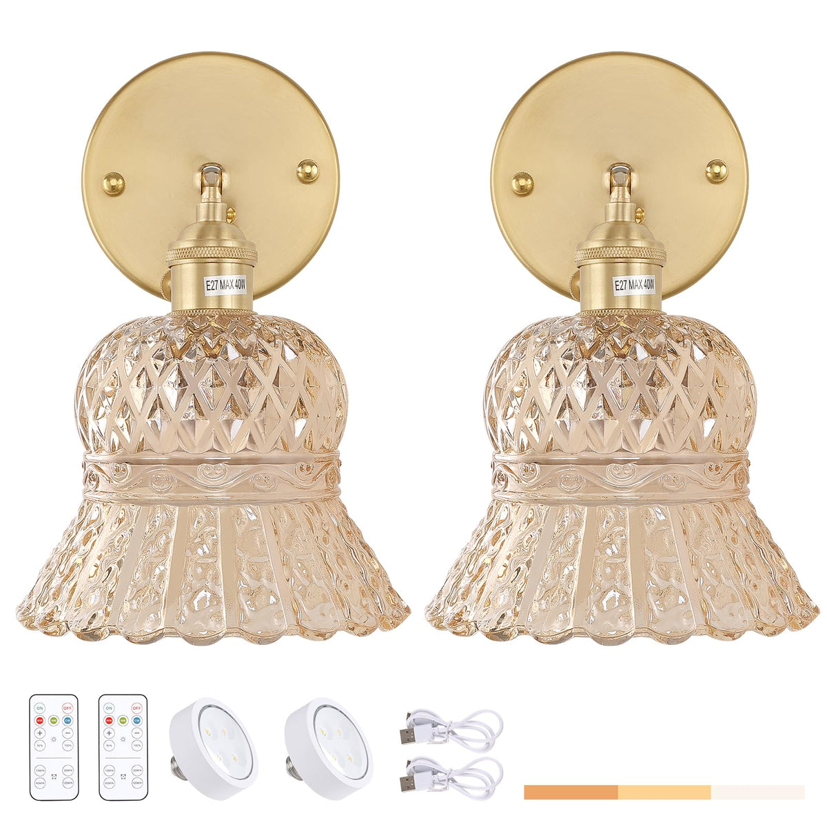 Shenmoyl Vintage Battery Operated Wall Sconces Set Of Two, Rechargeable Battery Powered Wall Sconce With Remote Control, Wireles