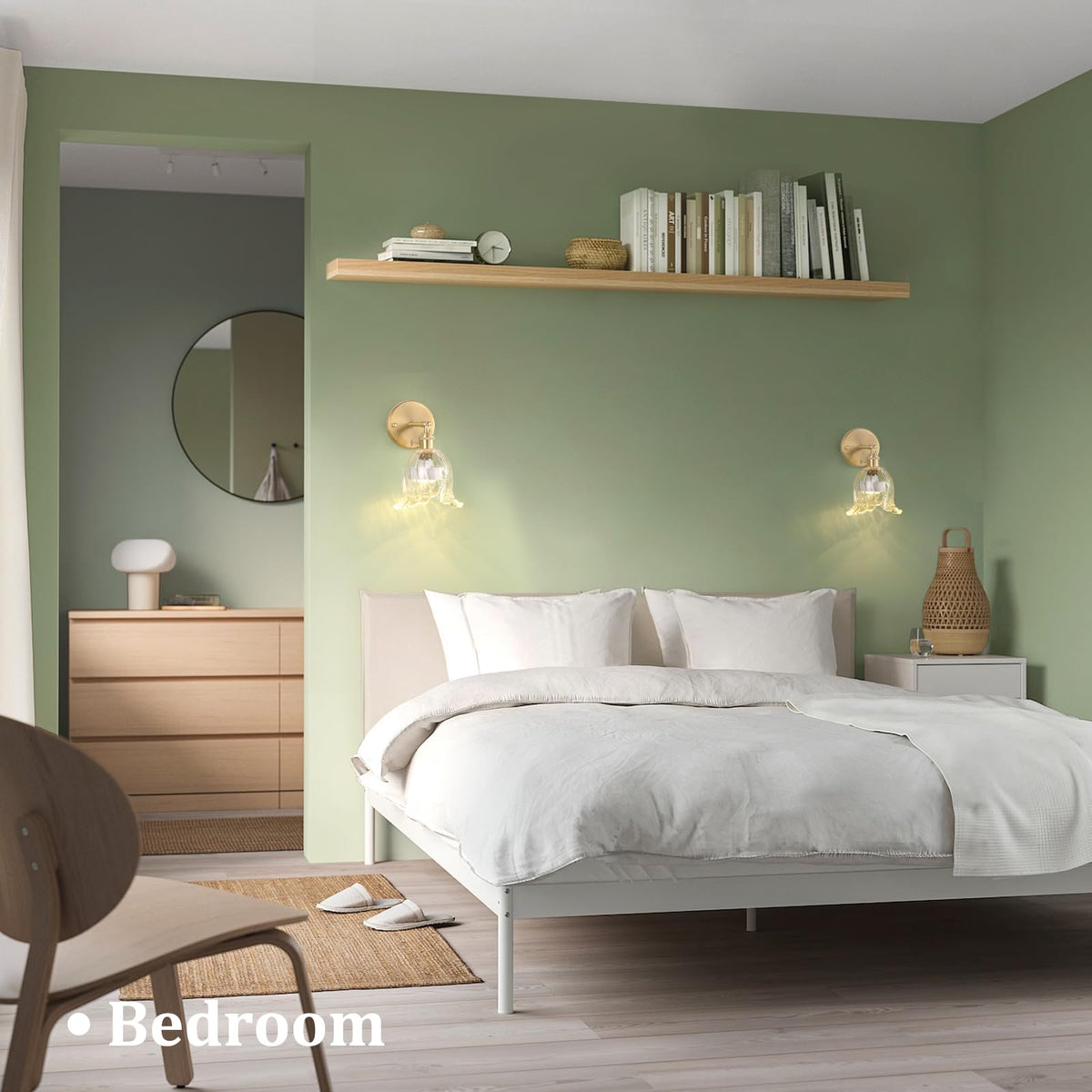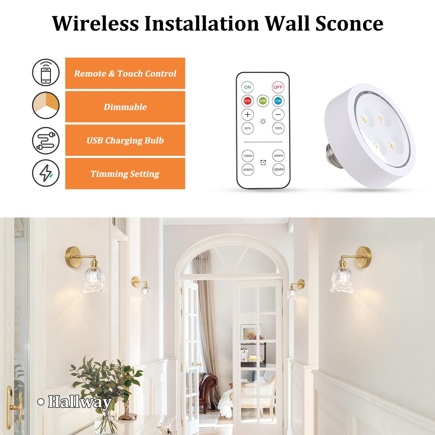 Delicate glass lampshade, retro brass plated iron lamp base, this wall sconce match various styles of homes. The perfect decor for your bedside, bed, bedroom, bathroom, living room, doorway, kitchen, hallway, office, etc.
