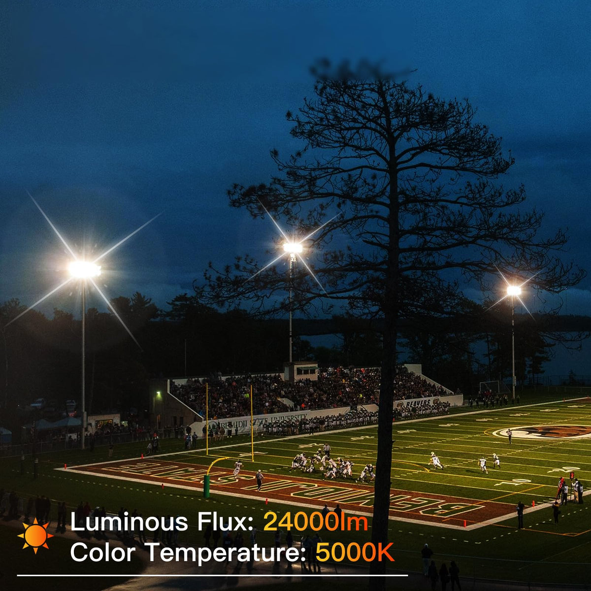 Super Flood Lights Outdoor: This 200W Floodlight With Premium Quality And 266 Units Of Leds, 50,000 Hours Of Long Life, And High Power Efficiency.Easy To Use: Floodlights Outdoor Comes 118Inch/10Ft/3M Cord With Plug, Plug And Play. Ip66 Waterproof: The Weatherproof Rating Of Ip66, No Matter Whether In The Rain, Snow, Blazing, Or Frozen Environment, The Led Porch Lights Outdoor Can Work Normally. Great For Both Indoor And Outdoor Usage. Note: Plug Is Not Waterproof. Easy Installation: Easy To Position With 180 Adjustable Bracket Of Led Flood Light, Specifications: -Luminous Power: 200W. -Luminous Flux:24000Lm. - Color Temperature:5000K -Input Voltage: Ac 100-120V. - Power Cord Length: 3M/10Ft/118Inch. -Beam Angle: 120 Degrees. -Color: Black. -Material: Aluminum + Tempered Glass.