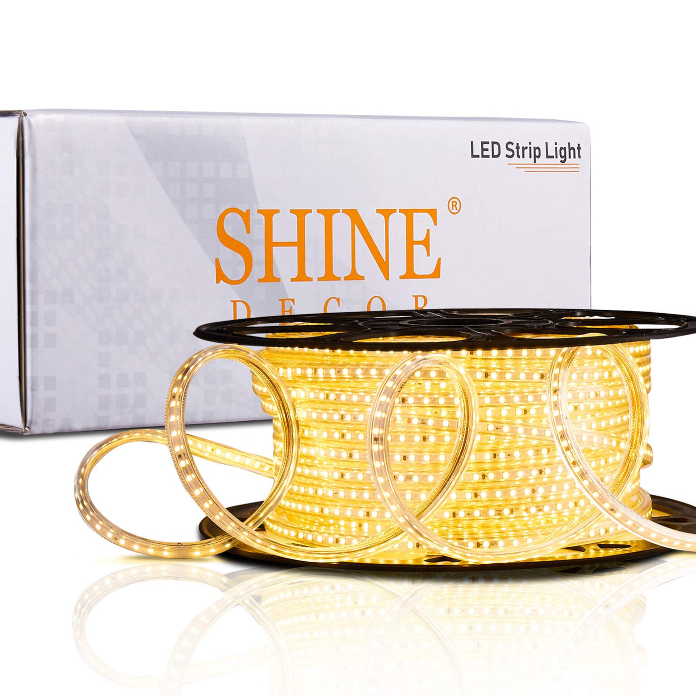 Shine Decor Led Strip Light 150Ft 120Vac, Super Bright 19012 Lumens Dimmable, Ip65 Waterproof For Outdoor Indoor, 3000K Warm Whi