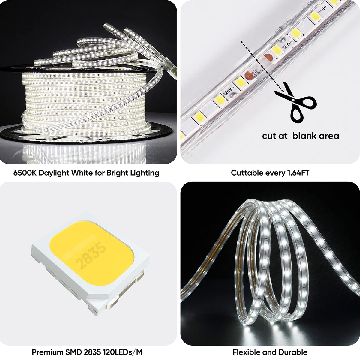 Shine Decor Led Strip Light 150Ft 120Vac, Super Bright 19012 Lumens Dimmable, Ip65 Waterproof For Outdoor Indoor, 6500K Cool Whi