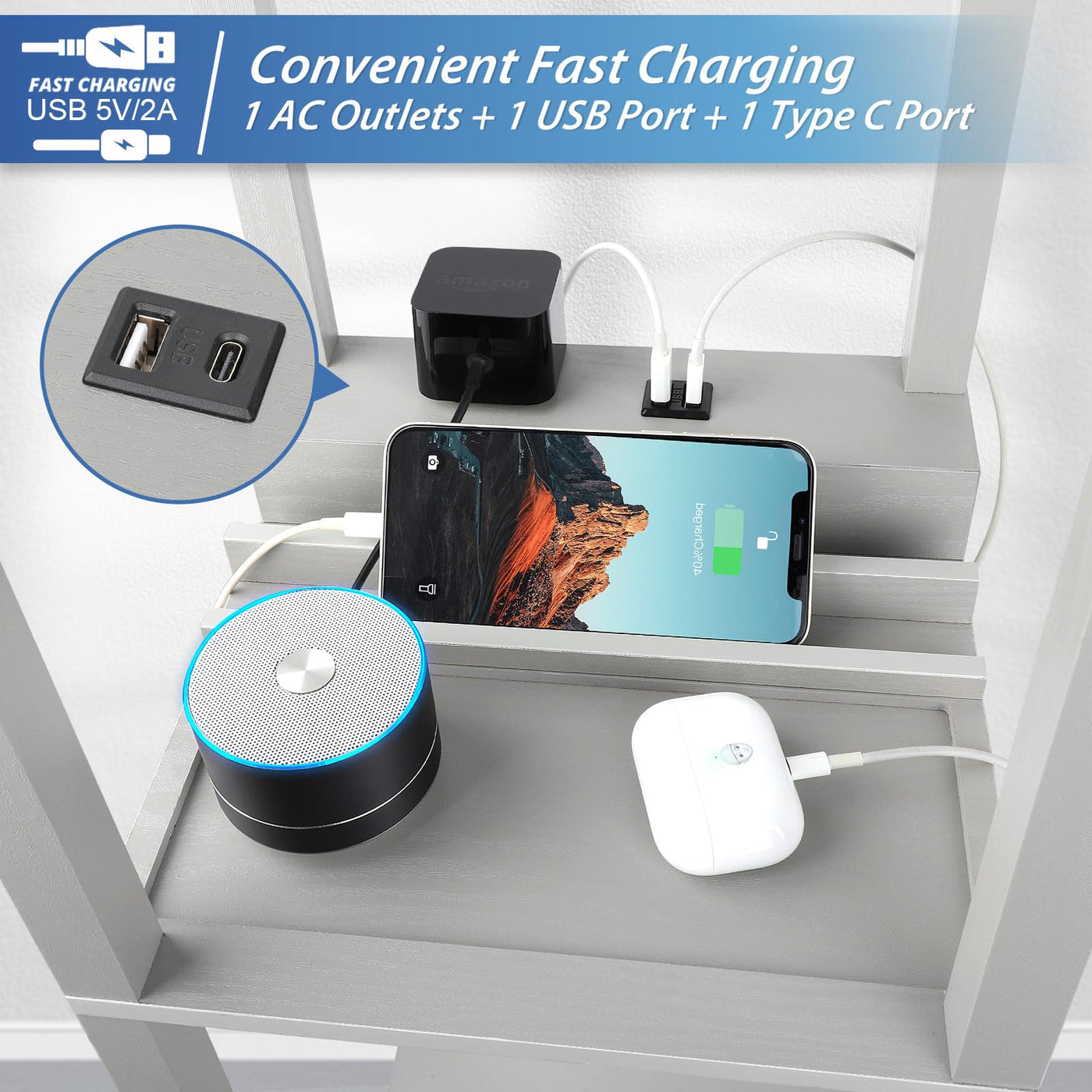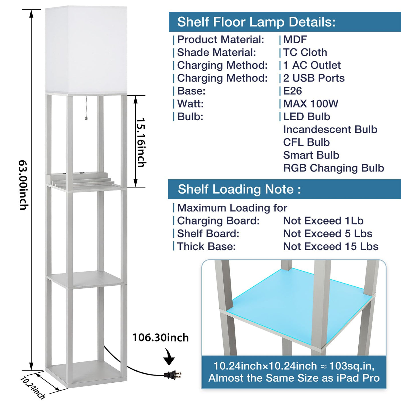 Shine Hai Shelf Lamp, Modern Standing Ligths With 2 Usb Ports And 1 Power Outlet, 3-Tiered Display Floor Lamps With Shelves For