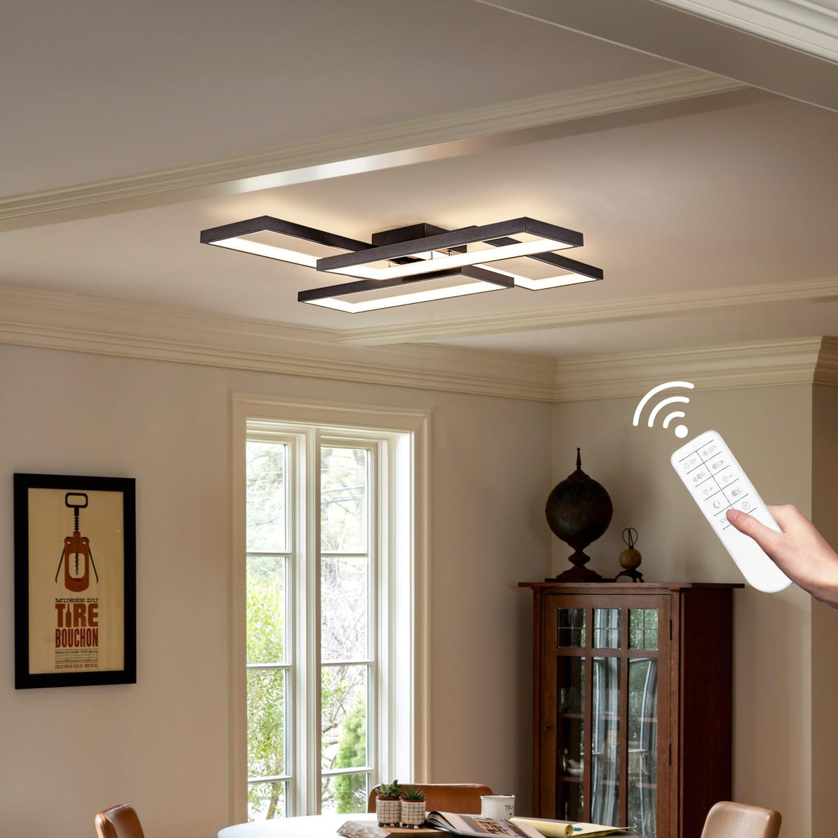 Shine Luest Modern Led Ceiling Lights For Bedroom 26'' Dimmable Square Ceiling Lights For Living Room With Remote Control Black