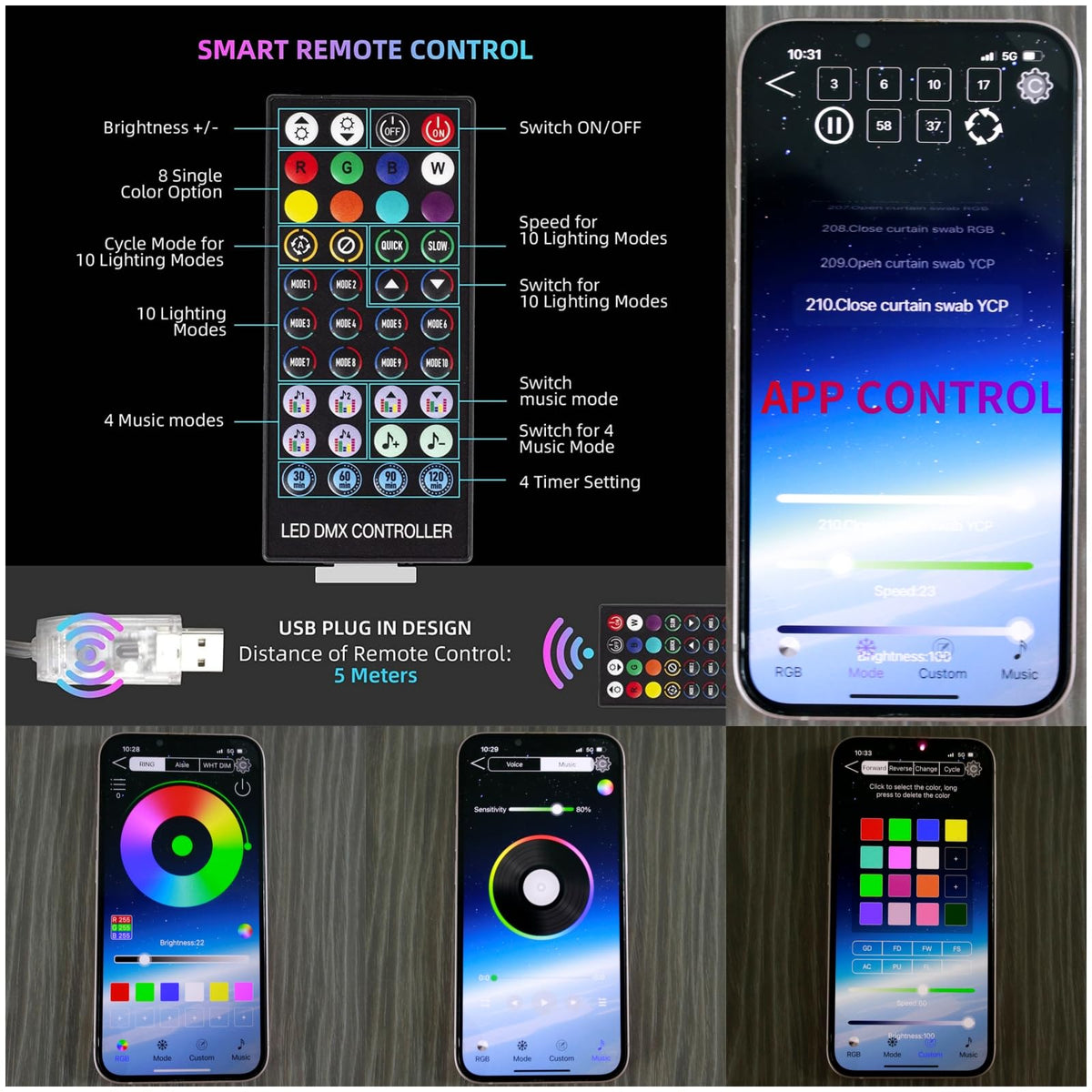 - **Smart App & Remote Control**: Easily control your lights via the "LED LAMP" app or the included remote. With 210 modes, adjust brightness, speed, and set timers for a fully customizable lighting experience.
