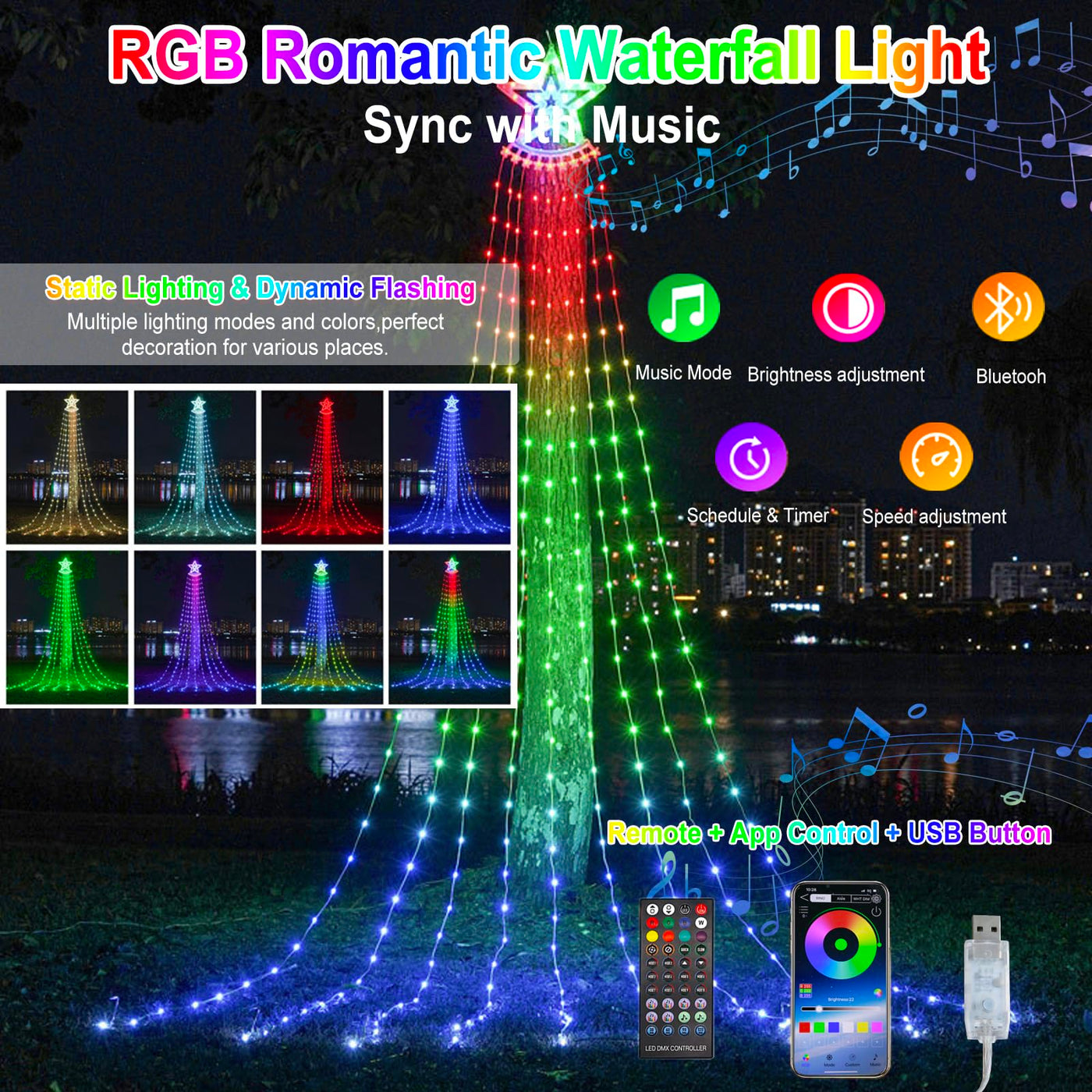 Transform your celebrations with the ShineCai RGB Waterfall Lights String, where innovation meets festive charm.