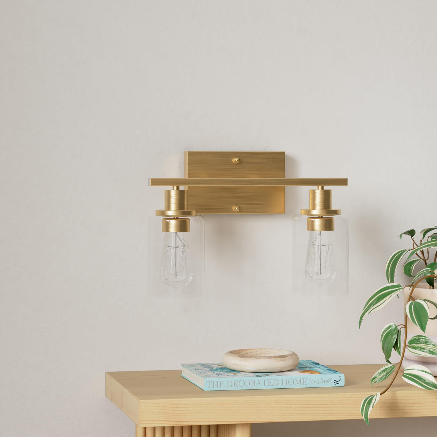 Shinetech 2-Light Gold Bathroom Vanity Fixtures, Modern Wall Lighting With Clear Glass, Brushed Brass Wall Sconce Light For Mirr