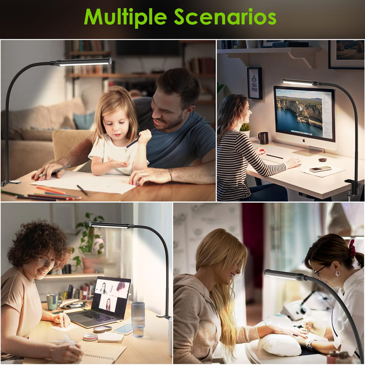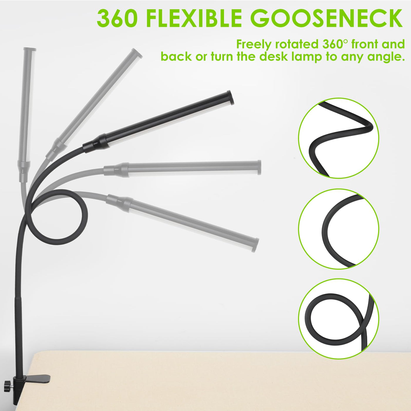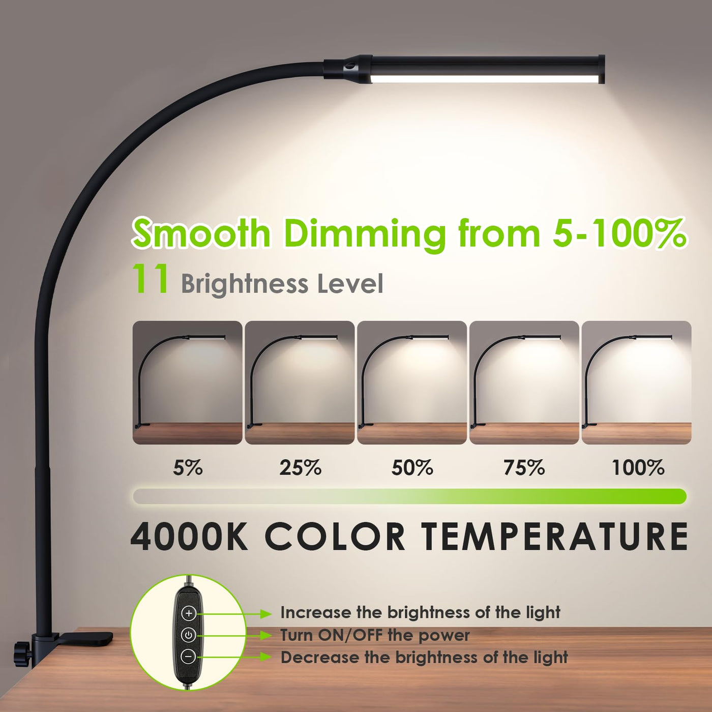 Shinetech Led Desk Lamp With Clamp, 4000K Natural White 11 Brightness Level Eye-Caring Clip Lights For Home Office, Flexible Goo