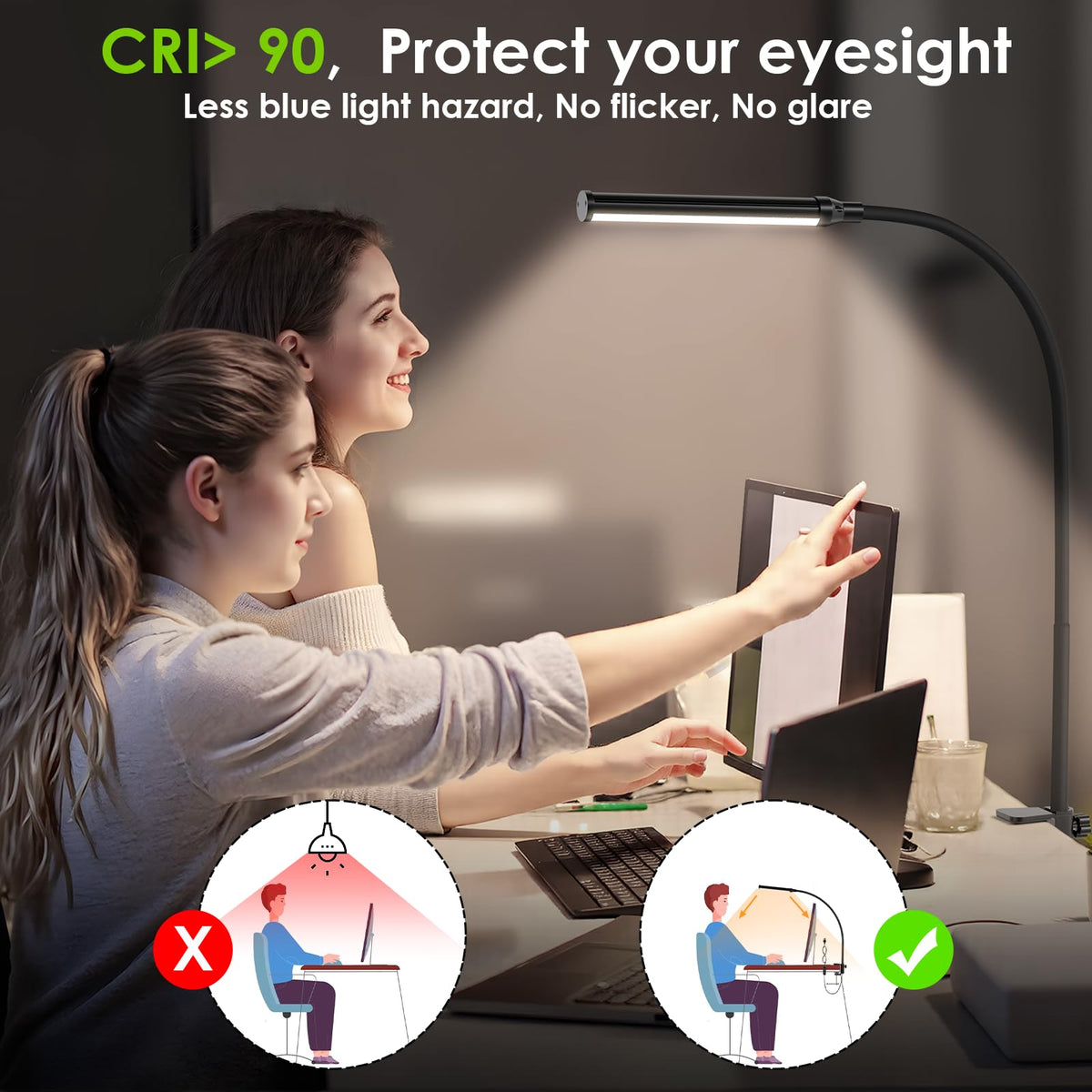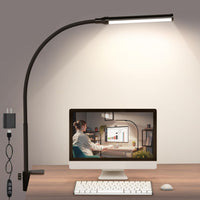ShineTech LED Desk lamp with Clamp, 4000K Natural White 11 Brightness Level Eye-Caring Clip Lights for Home Office, Flexible Gooseneck USB Adapter, Black