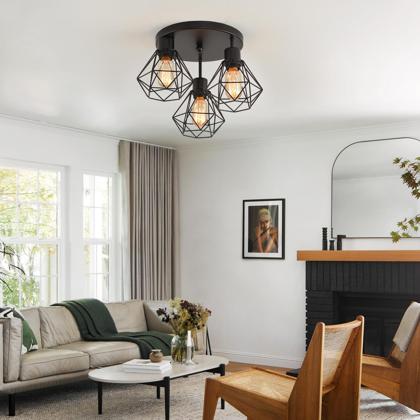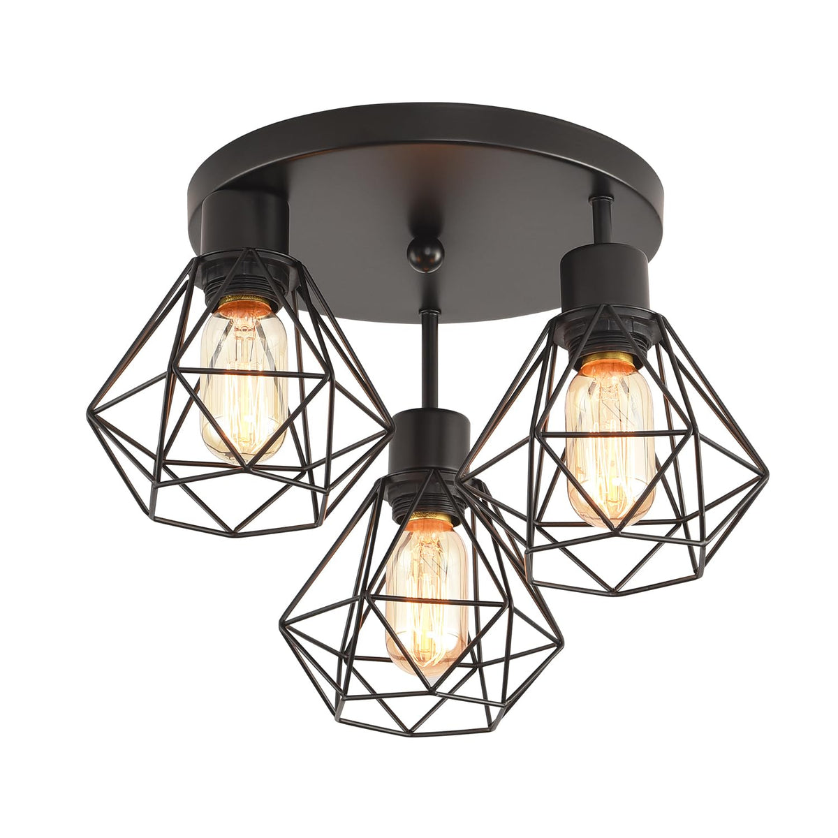 This ceiling light features a unique industrial design with an iron cage that adds a retro and artistic touch to your decor. Made from well-made metal, the fixture is durable and resistant to aging, bending, and color fading. The black finish complements its design, ensuring it integrates seamlessly into various interior styles. The fixture supports three E26 base bulbs (not included), allowing you the flexibility to choose between LED, CFL, incandescent, or halogen lighting options to suit your preferences.