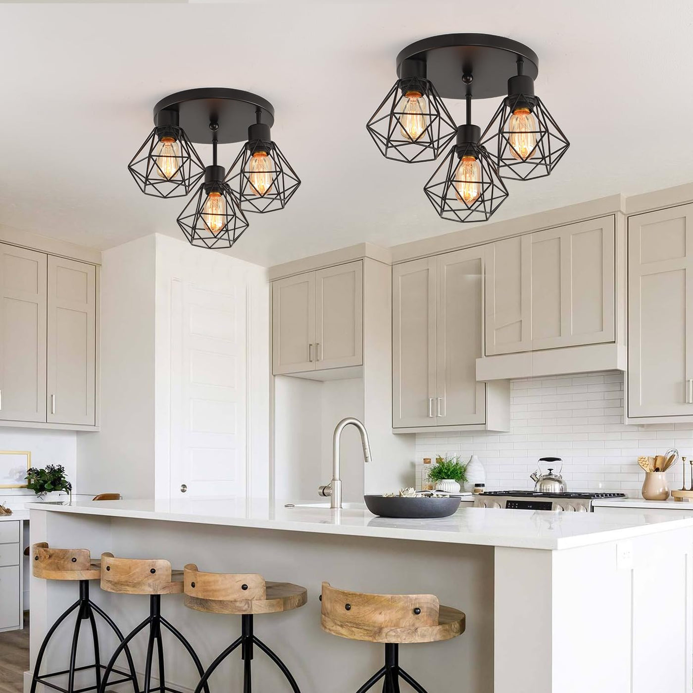 The Industrial 3-Light Metal Cage Ceiling Light Fixture is designed to enhance the ambiance of your home while providing ample lighting. This stylish fixture is perfect for modern and vintage-inspired spaces, making it an excellent choice for kitchens, bedrooms, dining areas, and hallways.