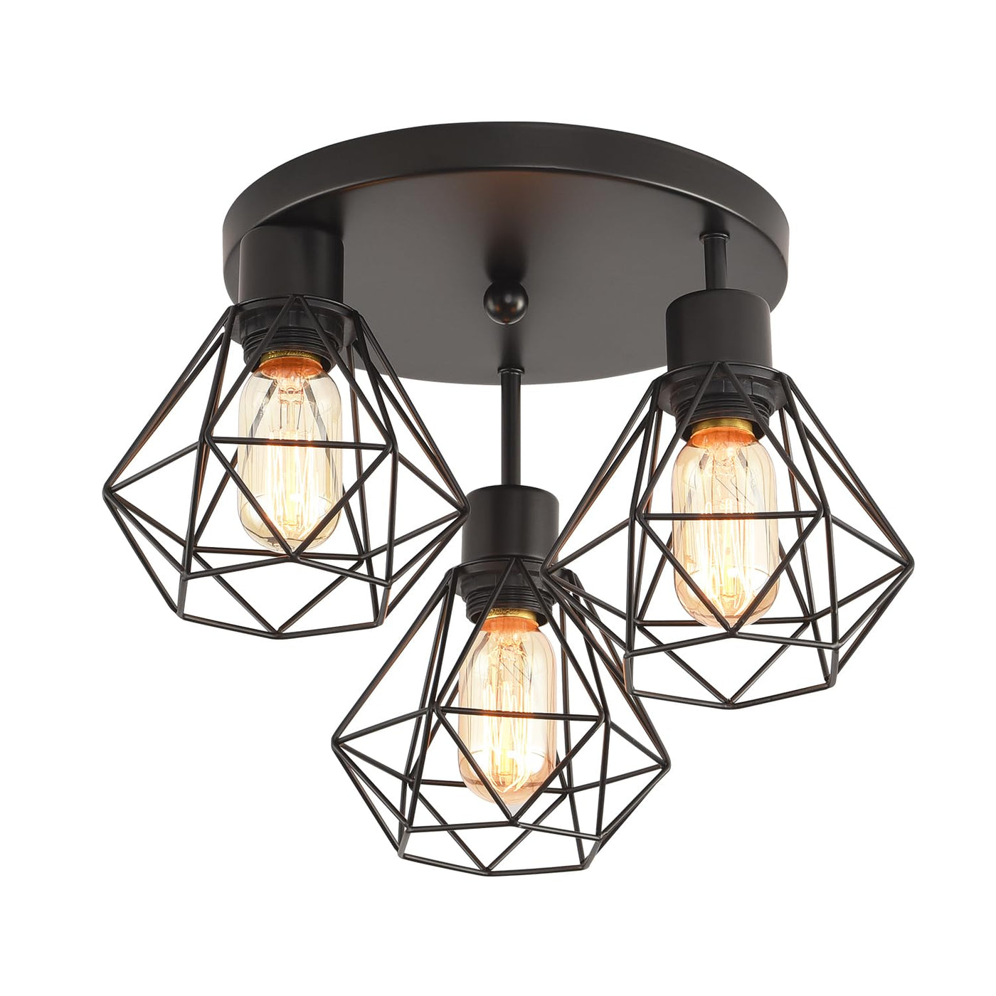 SHIWEIDA Industrial Ceiling Light Fixture, 3-Light Black Metal Cage, Model CCSAN, 1 Pack