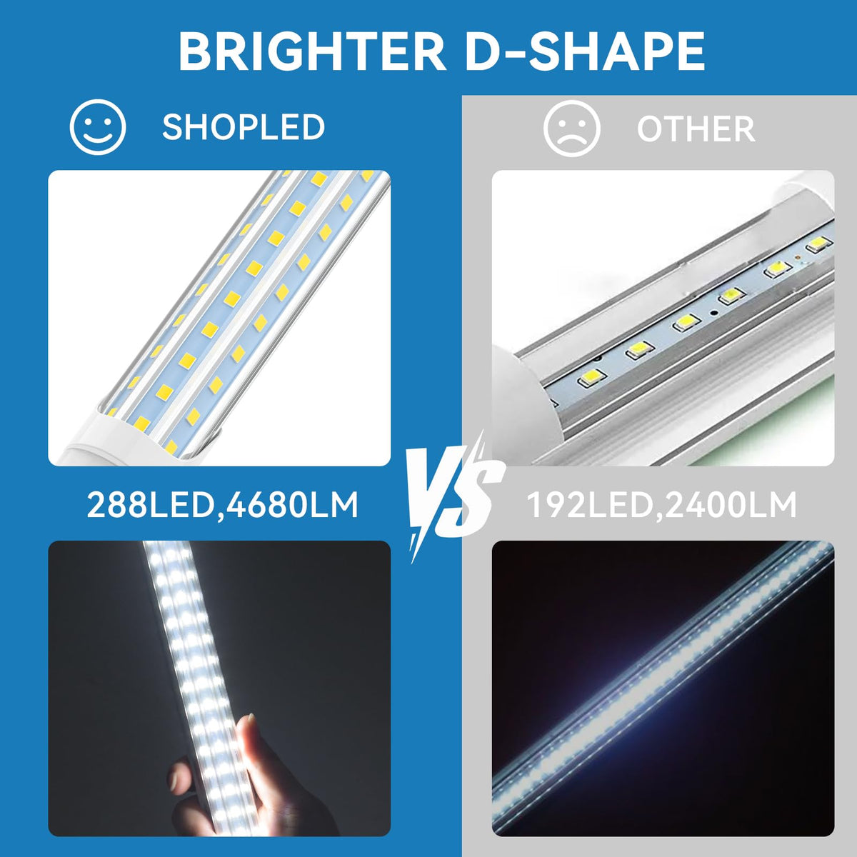 Shopled 25 Pack 4Ft Led Tube Lights 36W (Equivalent 95W) 4680Lm 6000K Type A+B D-Shaped Tube Double-End Power Replace T8/T10/T12
