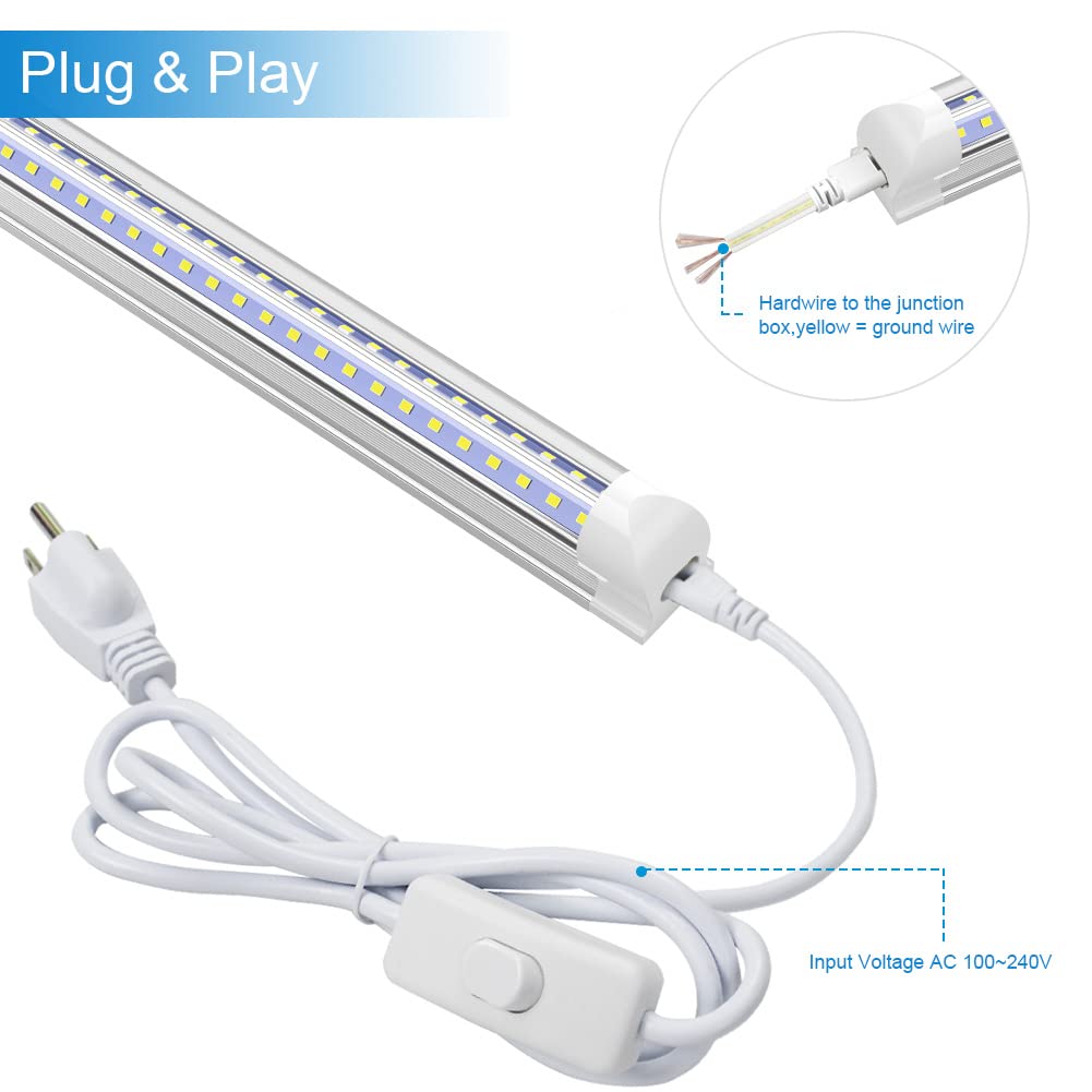 Q: What is the lifespan and energy efficiency of the SHOPLED LED lights?A: The SHOPLED 3FT LED lights have a lifespan of over 50,000 hours and provide 100 lumens per watt, making them an energy-efficient choice compared to traditional fluorescent lights.
