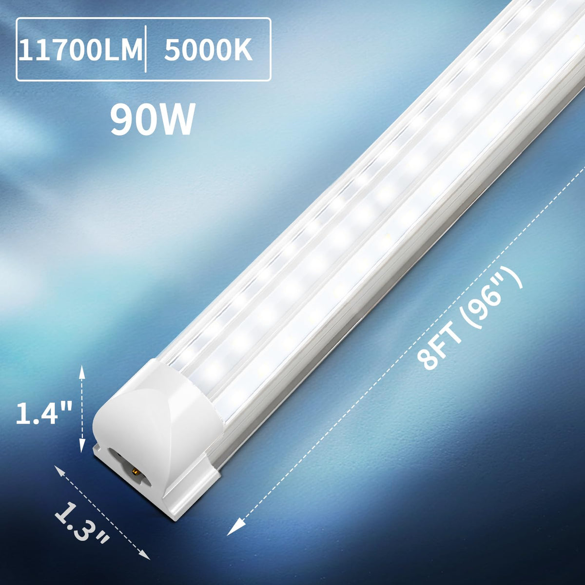 Shopled Led Shop Light 8Ft, 90W 11700 Lm 5000K Daylight White, Linkable T8 Led Tube Light Fixture, D-Shape, High Output, 8 Foot Led Shop Lights For Garage, Plug And Play, 4 Pack