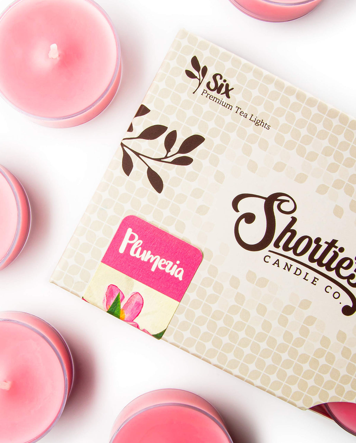 Indulge your senses with the enchanting aroma of our Plumeria Tealight Candles from Shortie's Candle Company. Perfectly crafted to elevate any occasion, these candles blend the sweet notes of peaches with a creamy gardenia-like fragrance, creating a tropical ambiance reminiscent of Hawaiian islands.