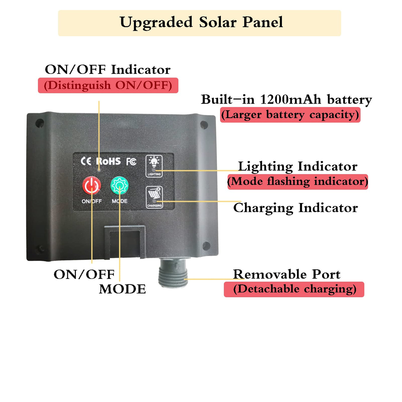 Q: What are the different lighting modes available for these fairy lights?A: These fairy lights come with 8 different flashing modes, including combination, wave, continuous, and various flashing patterns. You can easily switch between these modes using the mode button on the solar panel.