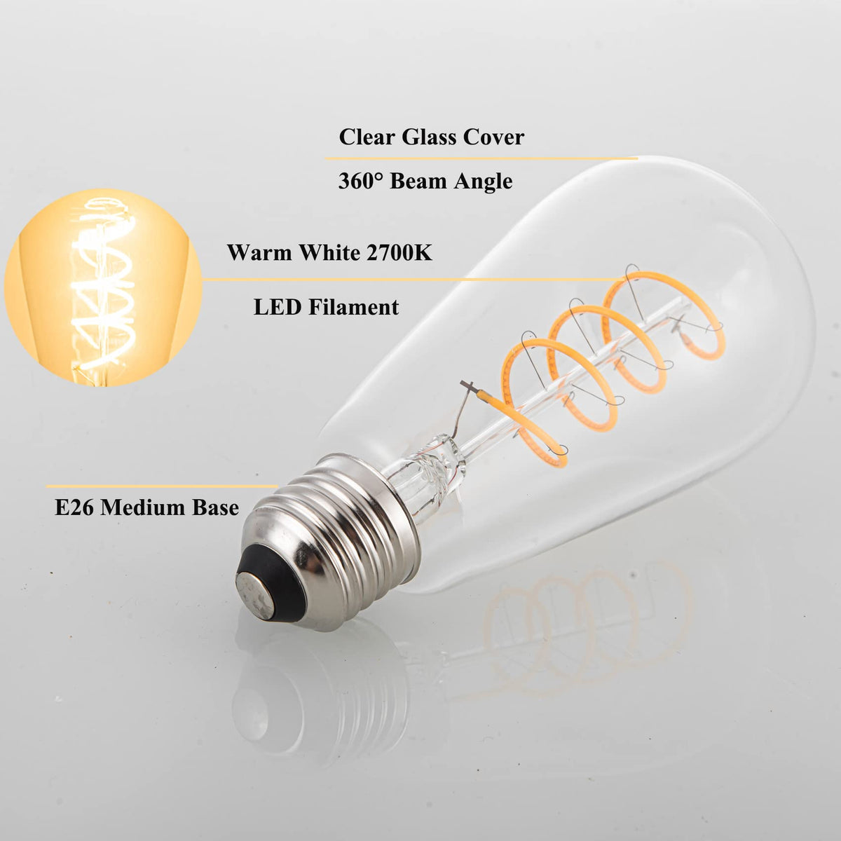 SHUWDKAR 12V LED Edison Bulbs E26 Medium Base 40W Equivalent, Low Voltage 4W Vintage Style Spiral LED 12V Light Bulb, Warm White