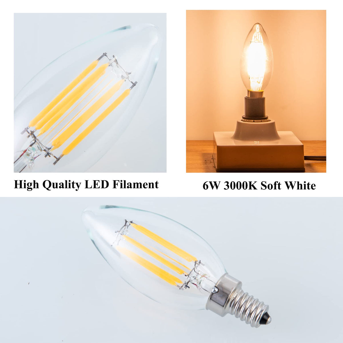 Shuwdkar Low Voltage Bulbs 12 Volt Candelabra Base Led Bulbs, 12V Candelabra Led Light Bulb 6W (60W Equivalent) Soft White 3000K