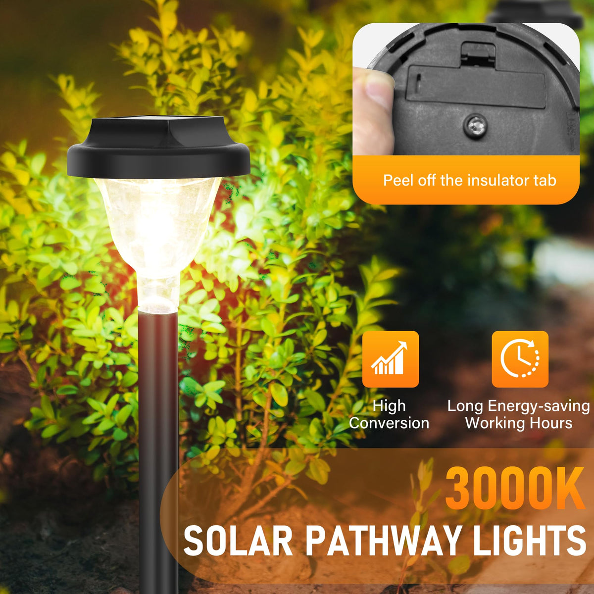 Siatom Solar Pathway Lights are the perfect addition to your outdoor space, providing efficient and eco-friendly lighting for your garden, pathway, or patio. This 10-pack of IP65 waterproof solar lights ensures durability and long-lasting performance, making them an ideal choice for any weather condition. With automatic on/off functionality, these lights conserve energy while illuminating your outdoor areas for up to 12 hours.