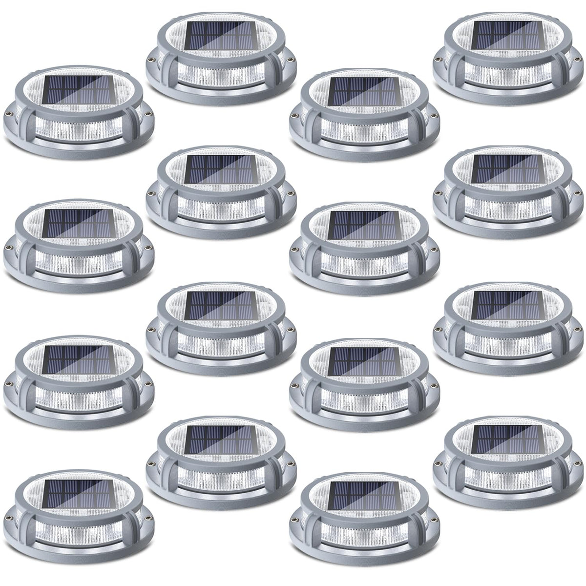 Siedinlar Solar Deck Lights Outdoor 2 Modes 16 Leds Dock Light Driveway Markers Solar Powered Waterproof For Ground Pathway Step