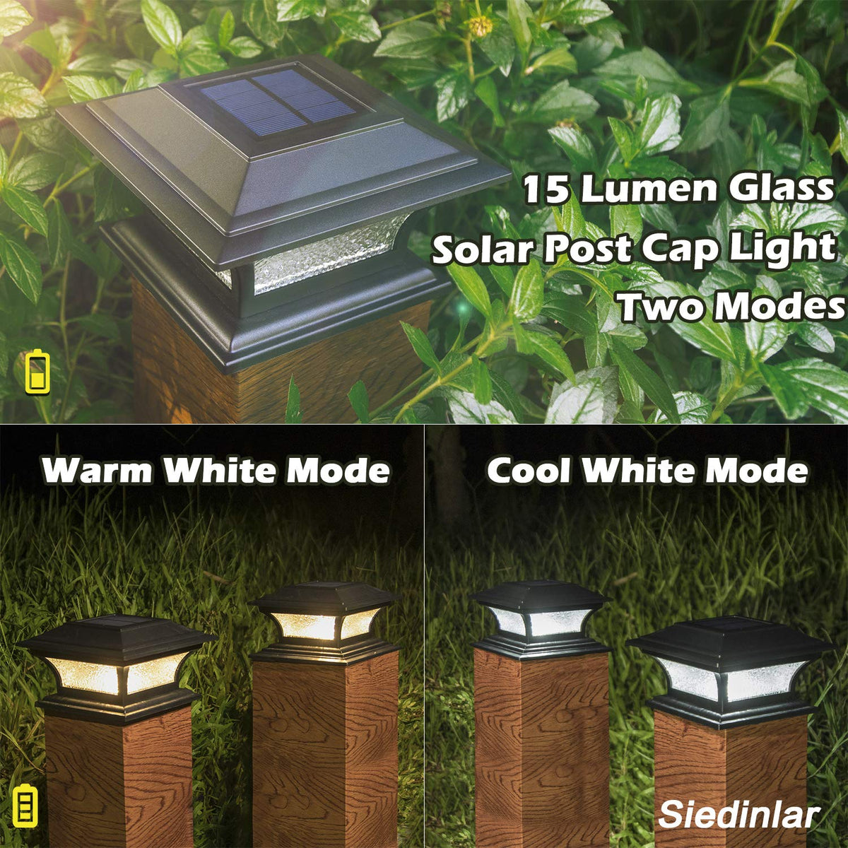 Siedinlar Solar Post Lights Outdoor Glass Led Fence Cap Light 2 Modes For 4X4 5X5 6X6 Posts Deck Patio Garden Decoration Warm Wh