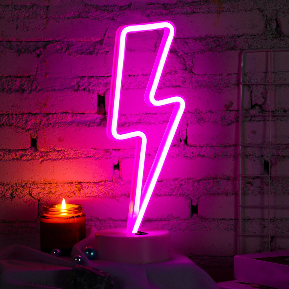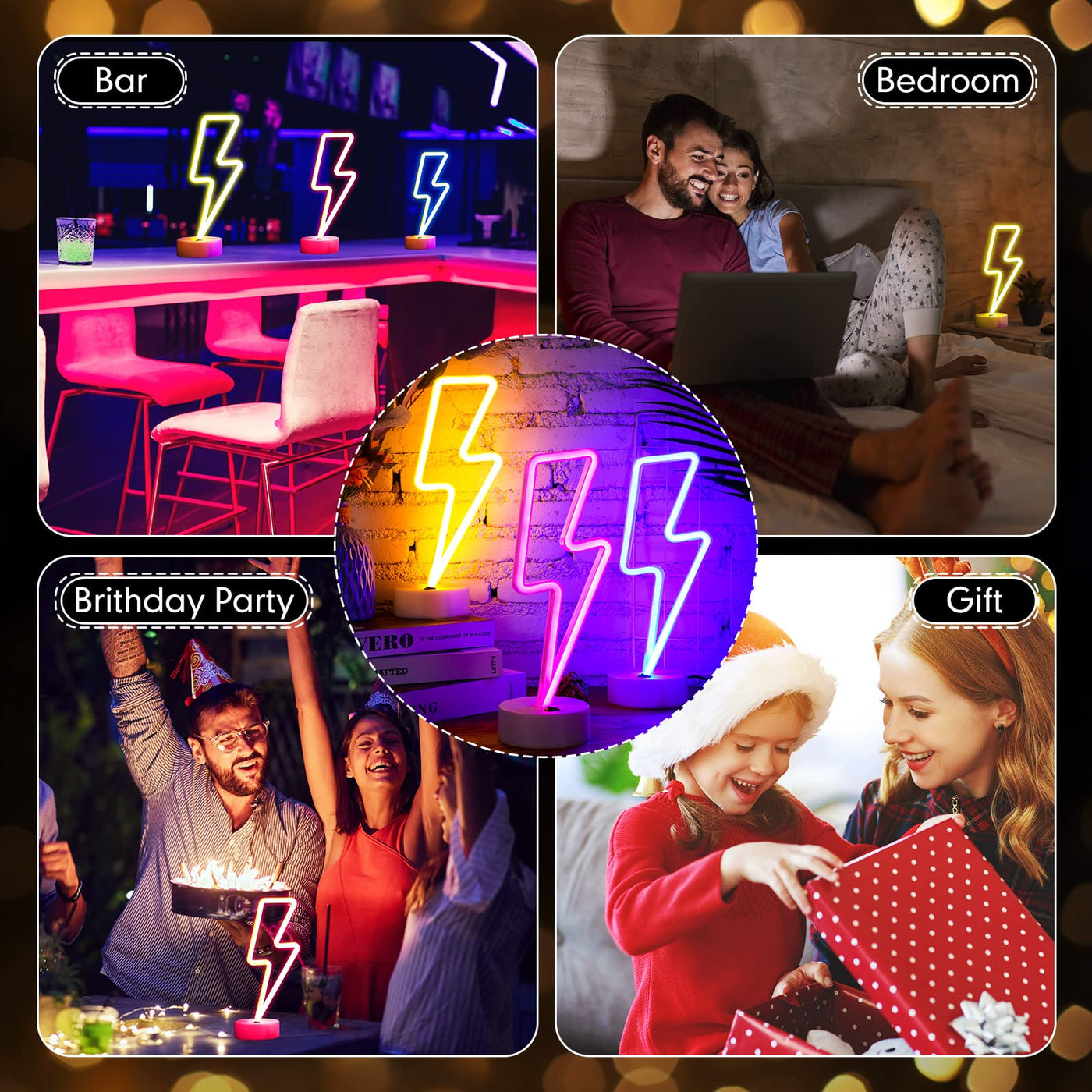 Sieral 3 Pcs Lightning Bolt Neon Signs Lightning Neon Lights with Base LED Sign USB or Battery Operated for Teen Girls Gift Birt
