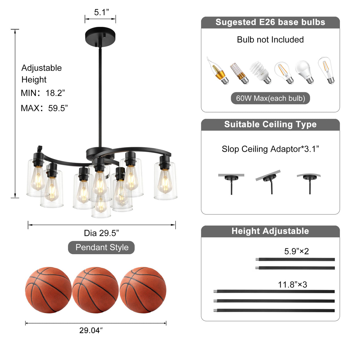 Sigaitwei 9-Light Modern Farmhouse Chandelier,29.5'' Black Dining Room Light Fixture,Industrial Pendant Lights Kitchen Island,Me
