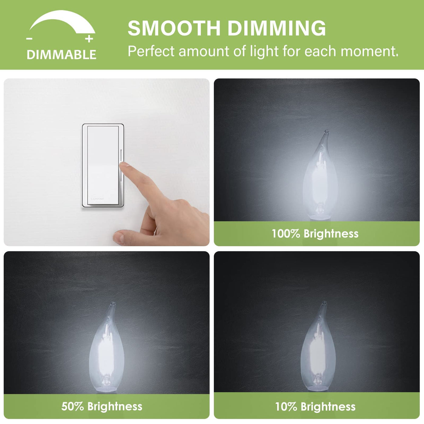 Sigalux Candelabra Led Light Bulbs Dimmable, E12 40 Watt Chandelier Light Bulbs, Ca10 Flame Tip Candle Light Bulbs, 5000K Daylig