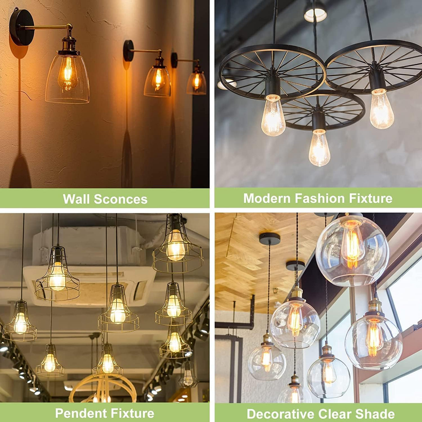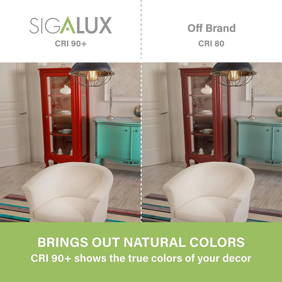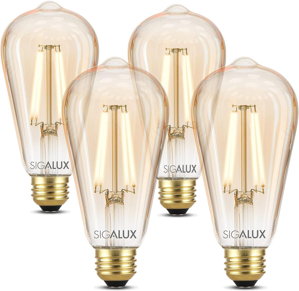 Smooth Dimming: The edison bulbs work with most dimmer switches to provide smooth dimming ranging from 100% to 10%, creating your favorite brightness for atmosphere your need by these dimmable edison light bulbs. | Instant-On: No buzzing and no flickering e26 led bulb, 60 watt equivalent, 700 lumens of light instantly, 2700K soft white bulbs with amber glass, offer warm and comfortable lighting. | High 90 CRI: 90 color rendering index, make colors appear more natural and vibrant, add warmth and charm to your any space by these vintage light bulbs. | Classic Retro Style Design: Sigalux e26 bulbs keep the vintage design with amber glass and e26 medium base, perfect using for industrial fixtures, decoratice shades,pendant fixtures, open or covered outdoors and more. | Replace Less Often: Long lasting 15,000 hours and last over 13.7 years, (based on 3 hours/day), great energy efficient e26 led bulb that use in your bedroom, dining rooms, kitchens, porches and more.Not for sale in California.