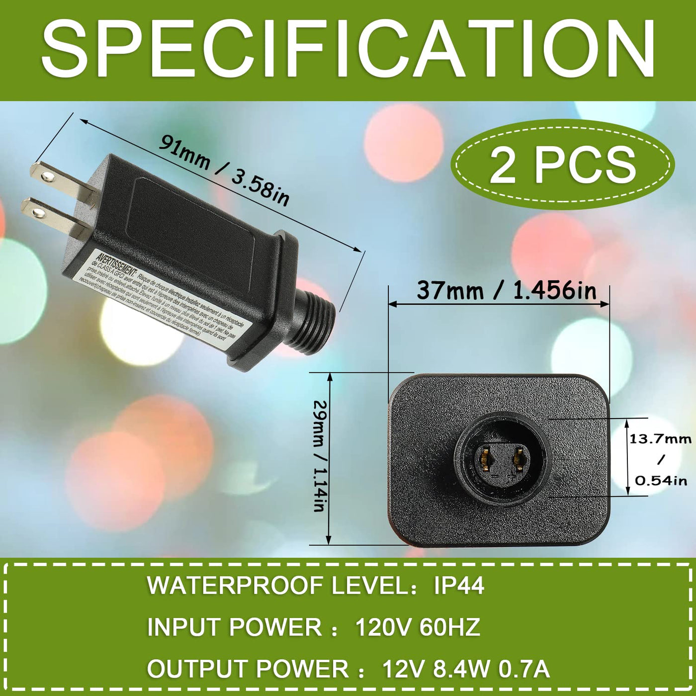 Sigandg Christmas Lights Plug Adapter Led Controller 2 Pieces Style:12V 8.4W 0.7A Current Rating:0.7 Amps Maximum Frequency:60.0 Hertz Nominal Voltage:12.00 Waterproof: Rainy And Snowy Days Can Have The Decoration Of Light, Indoor And Outdoor Is A Bright. Provide A Variety Of Protection: Over Power Protection, Over Current Protection, Over Voltage Protection. Package Includes: 2 X Lights Plug Adapter Please Check The Voltage, Current, Wattage And (+/-) The Hole Of The Two Connectors Before Purchase.