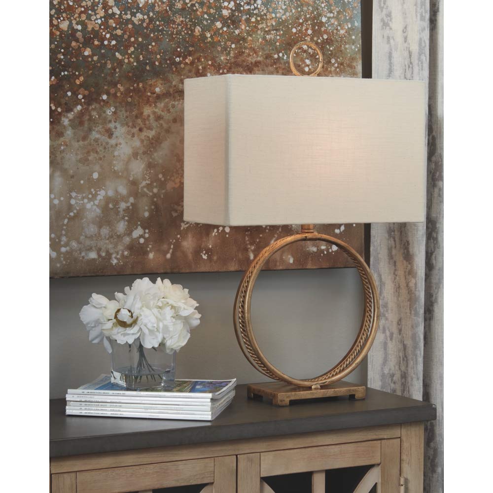Illuminate your space with the elegance of the Signature Design by Ashley Table Lamp Set. Crafted with a sophisticated antique gold finish, these lamps feature a stunning rounded shape that adds a touch of high drama to any room. Perfect for enhancing your decor, they provide warm ambient lighting to set the mood and create an inviting atmosphere.