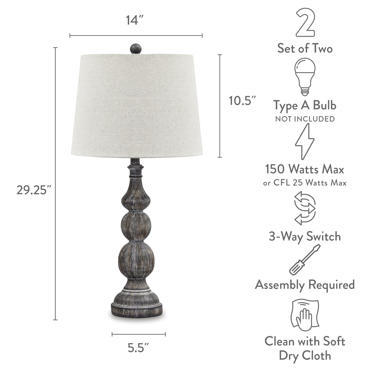 Signature Design By Ashley Rustic Farmhouse Gray Table Lamp Set Of 2, 14" X 14" X 29"