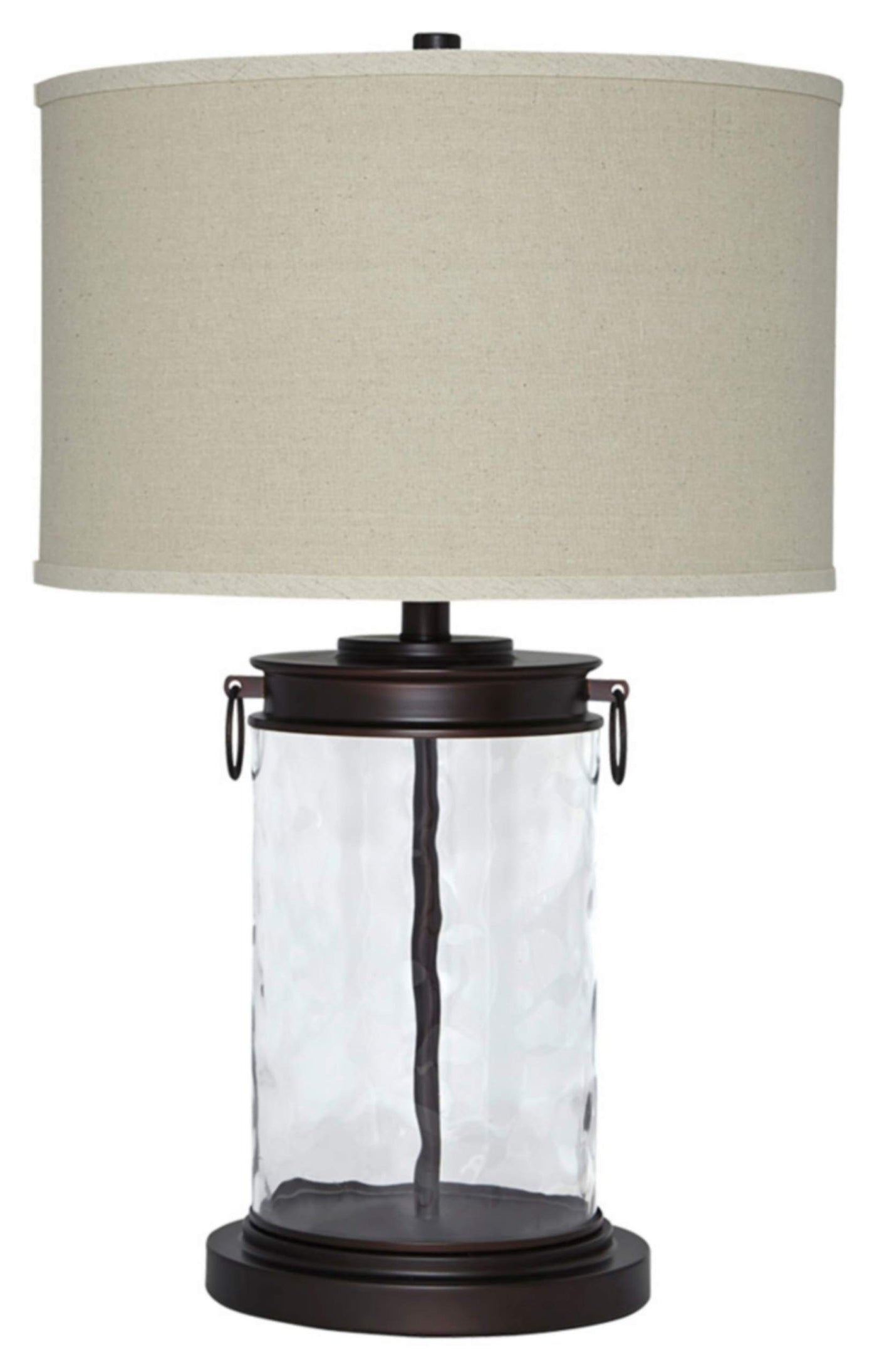 Signature Design By Ashley Tailynn 25.25" Glass Table Lamp With Hardback Shade, Clear Taupe