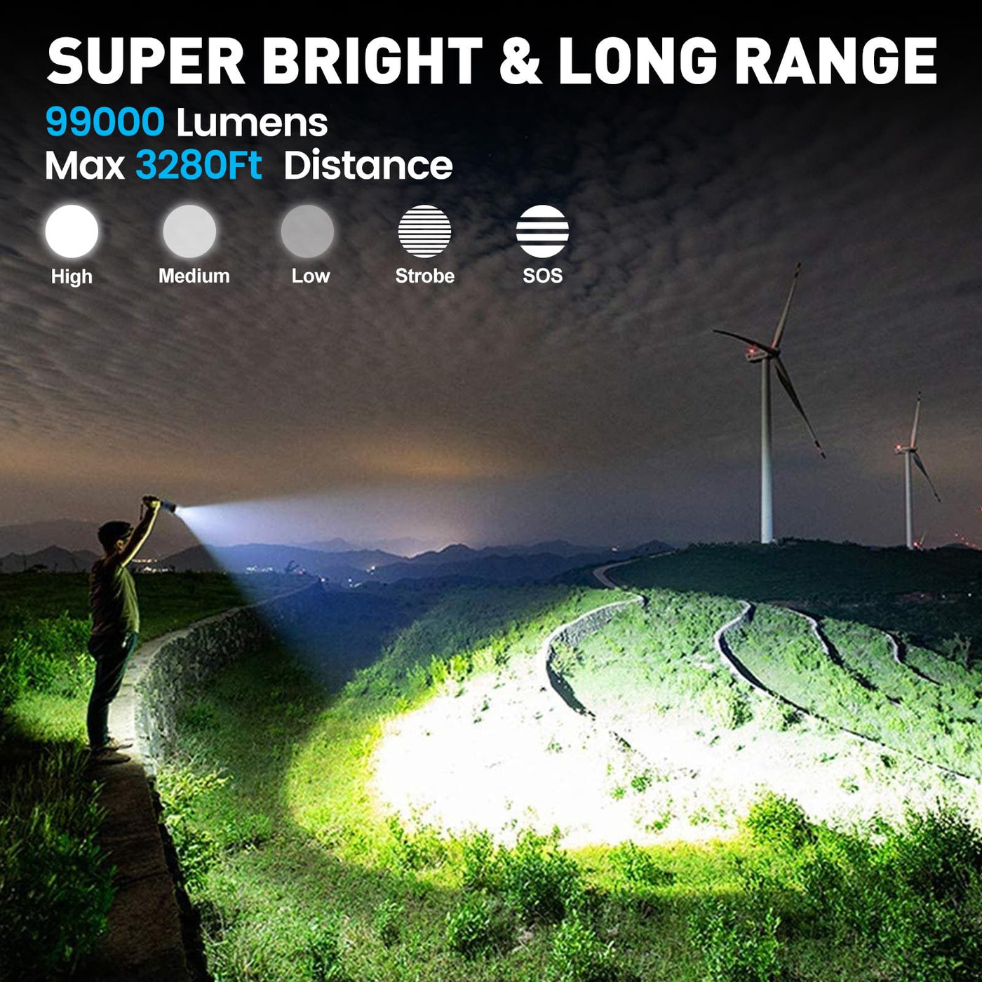Sigoobal Flashlights High Lumens Rechargeable 2 Pack, Super Bright 99000 Lumens Led Flashlights With 5 Light Modes, Powerful Handheld Flash Light For Home Camping E?Ergencies, Ipx6 Waterproof