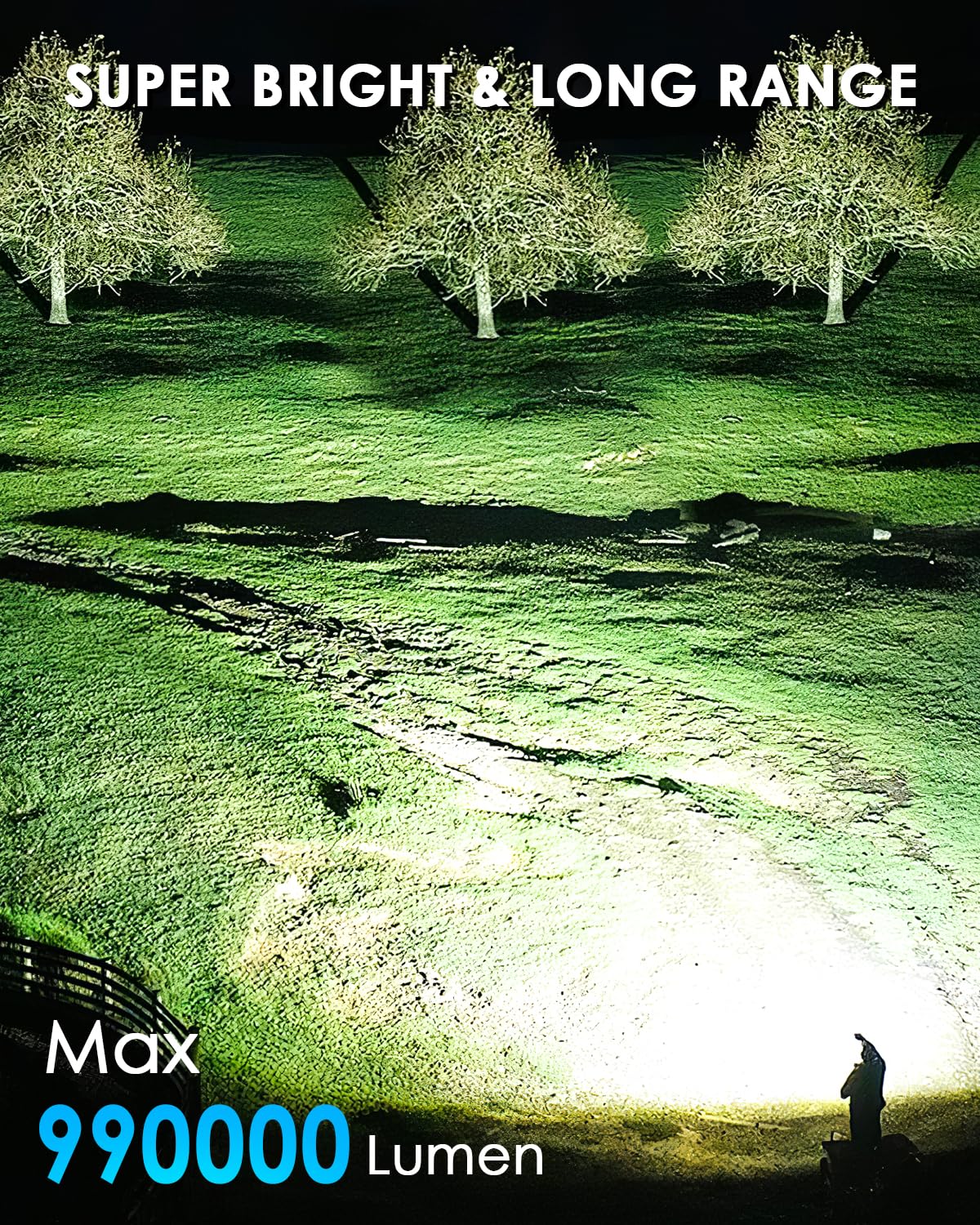 Flashlights High Lumens Rechargeable, 990000 Lumens Bright Flash Light, Powerful Led Flashlights, 15H Runtime, Ipx7 Waterproof Flashlights For Home, Camping, 7 Modes